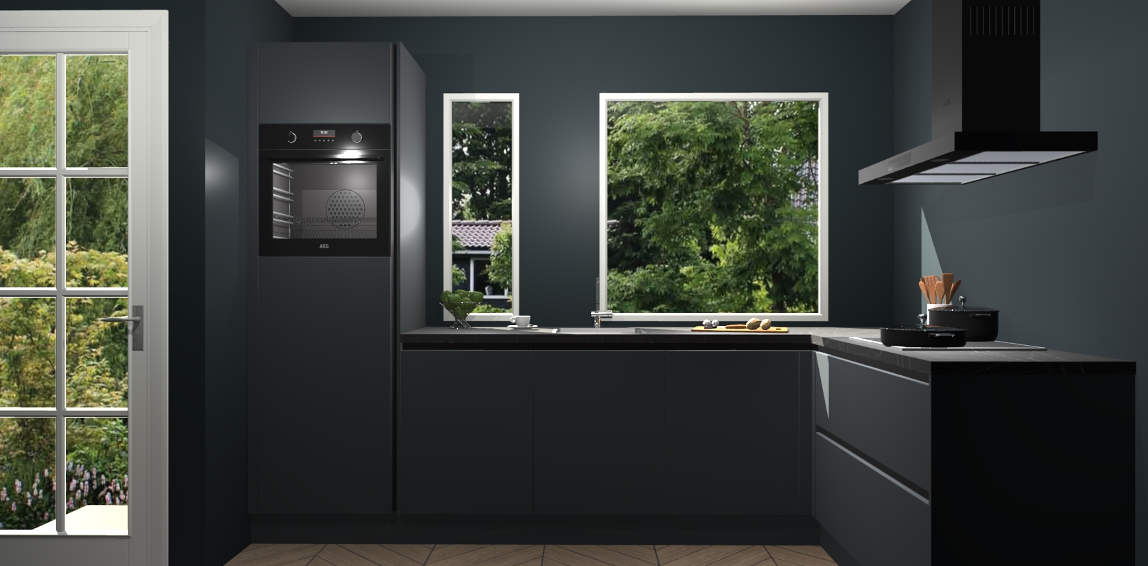 Deze complete keuken wordt geleverd met 5 inbouwapparaten: een oven, inductiekookplaat, afzuigkap, vaatwasser en koelkast. De toestellen kunnen na bestelling ook gemakkelijk worden opgewaardeerd naar AEG. Bovendien is elke deur in deze keuken voorzien van handige softclose technologie voor eenvoudig gebruik! Als een leuke toevoeging zit in deze keuken ook een carrousel, zo hoef je niet meer de hoek in duiken om iets te pakken.