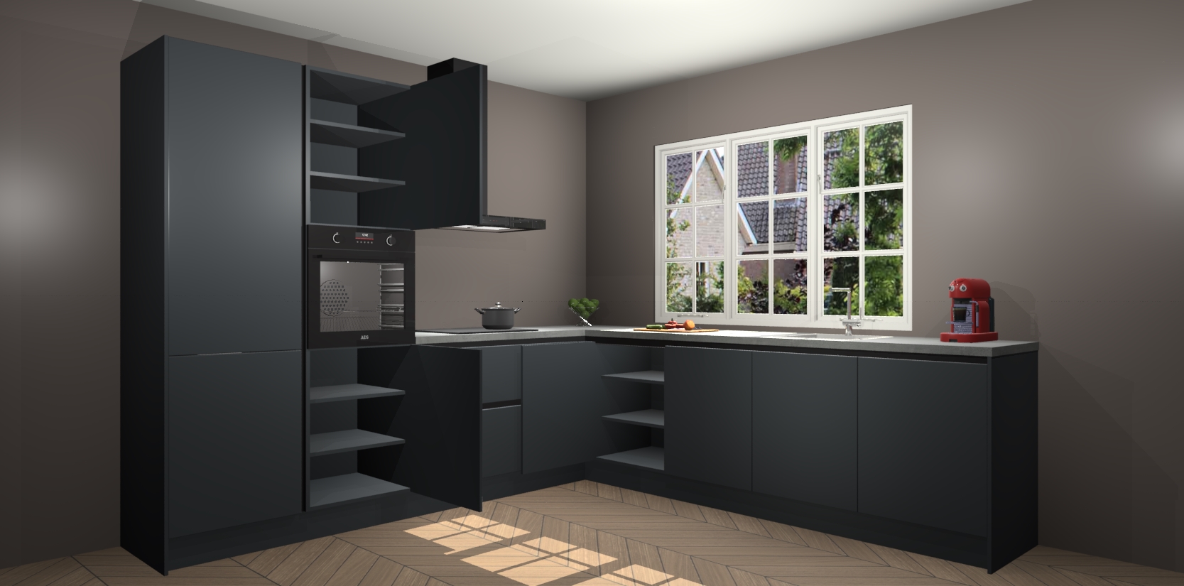Welkom in de nieuwe wereld van een moderne keuken: de Onyxgrijze greeploze keuken Casablanca! Met dit innovatieve keukendesign haalt u de natuur naar binnen. Neem plaats aan uw hout-look keuken en voel u verbonden met de prachtige Onyxgrijze kleur. Zeer gebruiksvriendelijk, ervaring door prettige materialen en kleur die perfect aansluiten bij uw sfeerkeuze in huis.