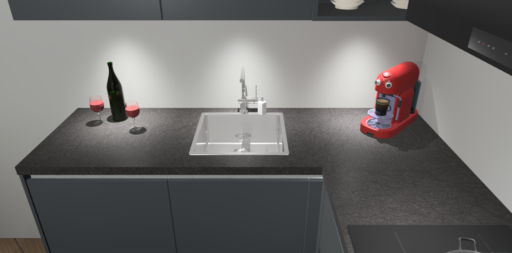 - De spoelbak is nog niet in gevreesd. Dit dient tijdens het werk gedaan te worden