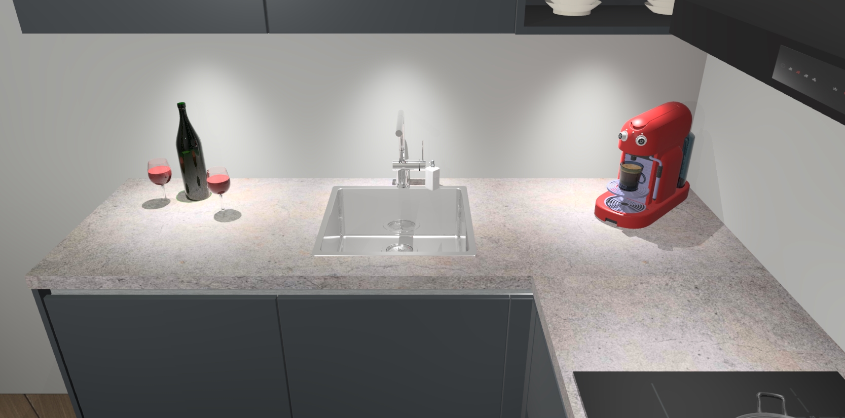 - Bij een hoekwerkblad zijn de hoeken in gevreesd en op maat gemaakt