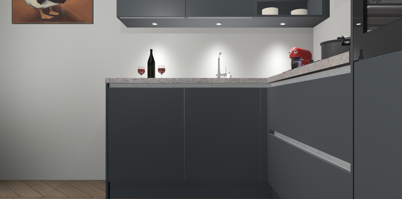 De Onyxgrijze greeploze keuken Cognac gaat alleen maar om de beste keukenervaring. Kies gewoon de beste apparatuur en ongeëvenaarde Duitse constructie die u thuis wilt hebben en verander uw huiskamer hartelijkheid meteen in professionaliteit. Laat de toon weten dat u gemakkelijk kan genieten van alle luxe die u verdiend? Bestel nu de Onyxgrijze greeploze keuken Cognac voor bij u thuis!