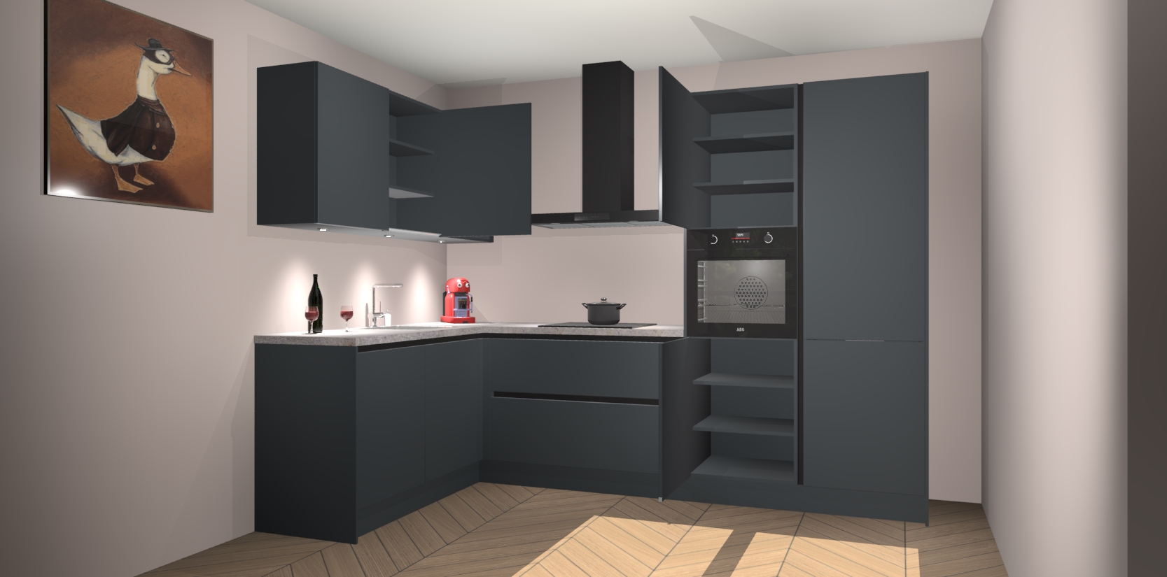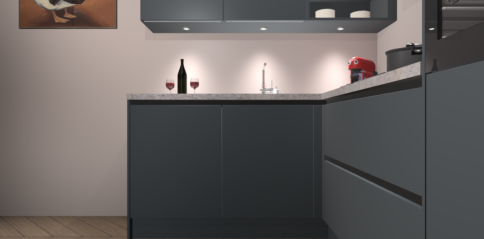 De Onyxgrijze greeploze keuken Cognac gaat alleen maar om de beste keukenervaring. Kies gewoon de beste apparatuur en ongeëvenaarde Duitse constructie die u thuis wilt hebben en verander uw huiskamer hartelijkheid meteen in professionaliteit. Laat de toon weten dat u gemakkelijk kan genieten van alle luxe die u verdiend? Bestel nu de Onyxgrijze greeploze keuken Cognac voor bij u thuis!