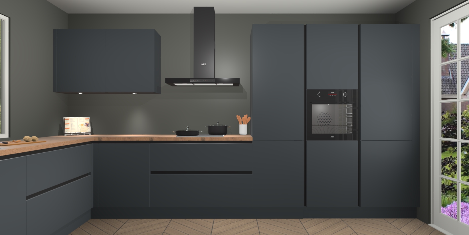 Heeft u nog apparatuur nodig? Geen probleem: de Onyxgrijze greeploze keuken Debrecen bevat vijf ingebouwde apparaten - een oven, inductiekookplaat, afzuigkap, vaatwasser en koelkast - die gemakkelijk kunnen worden bijgewerkt naar AEG na bestelling. En als dat nog niet genoeg is; onze kasten worden pre-geassembleerd geleverd en zijn verkrijgbaar tegen een vastgeroeste lage prijs! U hoeft nooit meer te zoeken naar goede kwaliteit en service want onze producten hebben echt Duitse kwaliteit.