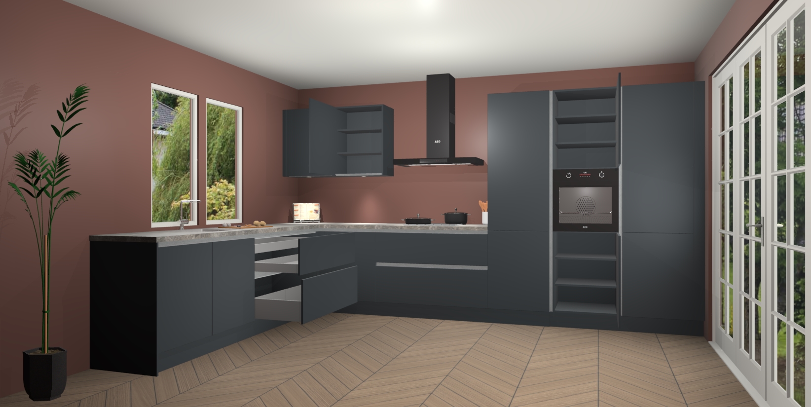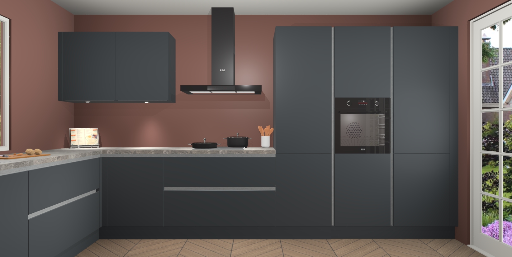 Heeft u nog apparatuur nodig? Geen probleem: de Onyxgrijze greeploze keuken Debrecen bevat vijf ingebouwde apparaten - een oven, inductiekookplaat, afzuigkap, vaatwasser en koelkast - die gemakkelijk kunnen worden bijgewerkt naar AEG na bestelling. En als dat nog niet genoeg is; onze kasten worden pre-geassembleerd geleverd en zijn verkrijgbaar tegen een vastgeroeste lage prijs! U hoeft nooit meer te zoeken naar goede kwaliteit en service want onze producten hebben echt Duitse kwaliteit.