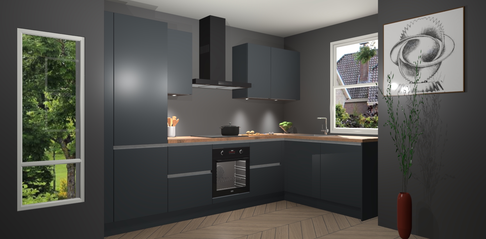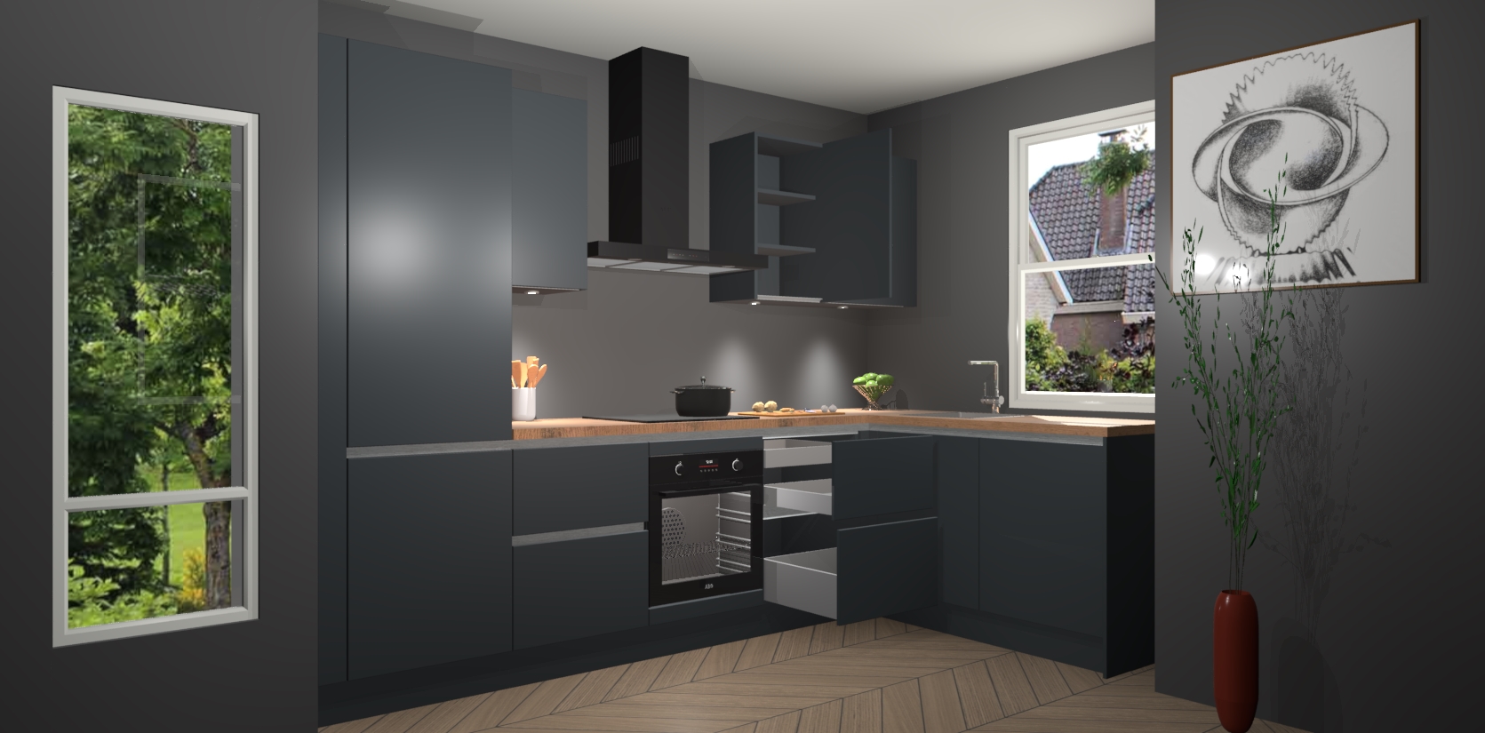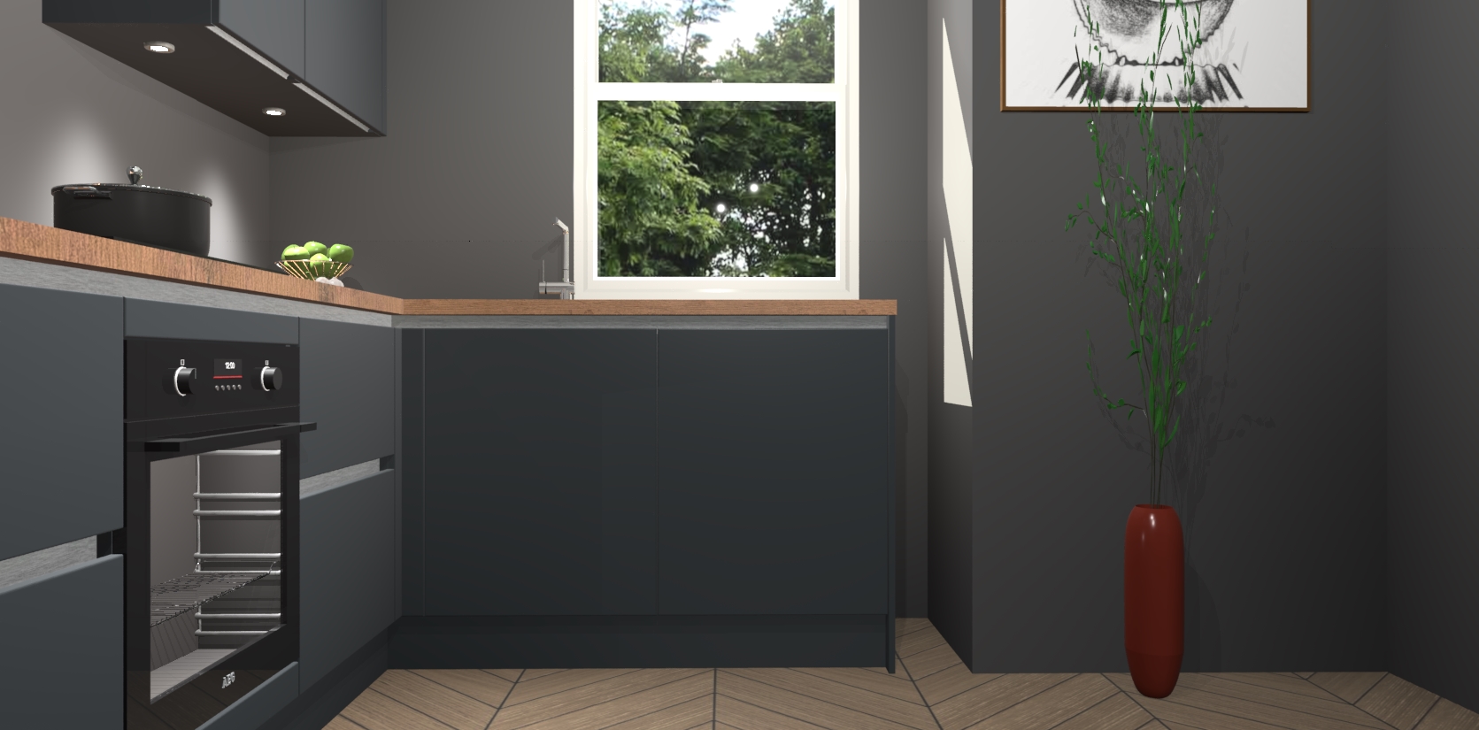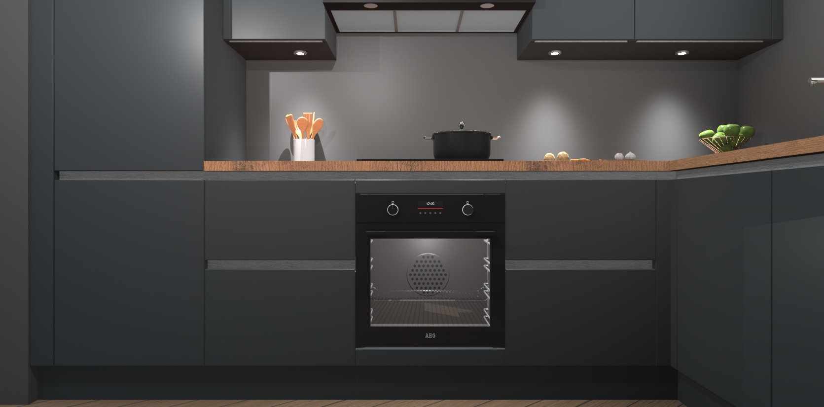 De onyxgrijze greeploze keuken Geneve is uitgerust met 5 inbouwapparaten - een oven, inductiekookplaat, afzuigkap, vaatwasser en koelkast - voor al uw kook- en bewaarbehoeftes. U kunt deze apparaten desgewenst eenvoudig upgraden naar AEG of de oven omruilen voor een combimagnetron na het plaatsen van uw bestelling. En met de soft close deuren, voldoende opbergruimte en kasten die voorgemonteerd worden geleverd, bent u in een mum van tijd klaar om heerlijke maaltijden te bereiden!