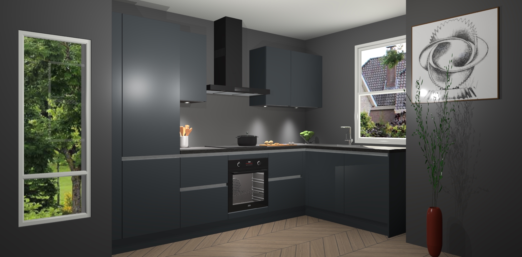 De onyxgrijze greeploze keuken Geneve is precies wat u nodig heeft als u op zoek bent naar modern design, versmolten met tijdloze schoonheid. De strakke afwerking voegt klasse toe terwijl het toch een uitnodigende sfeer behoudt; zeker om zowel gasten als uzelf te inspireren om in stijl te gaan koken! En nog beter, het zal uw budget niet breken - dus waarom wachten? Met de onyxgrijze greeploze keuken Geneve bent u verzekerd van kwaliteit zonder in te leveren op de prijs!