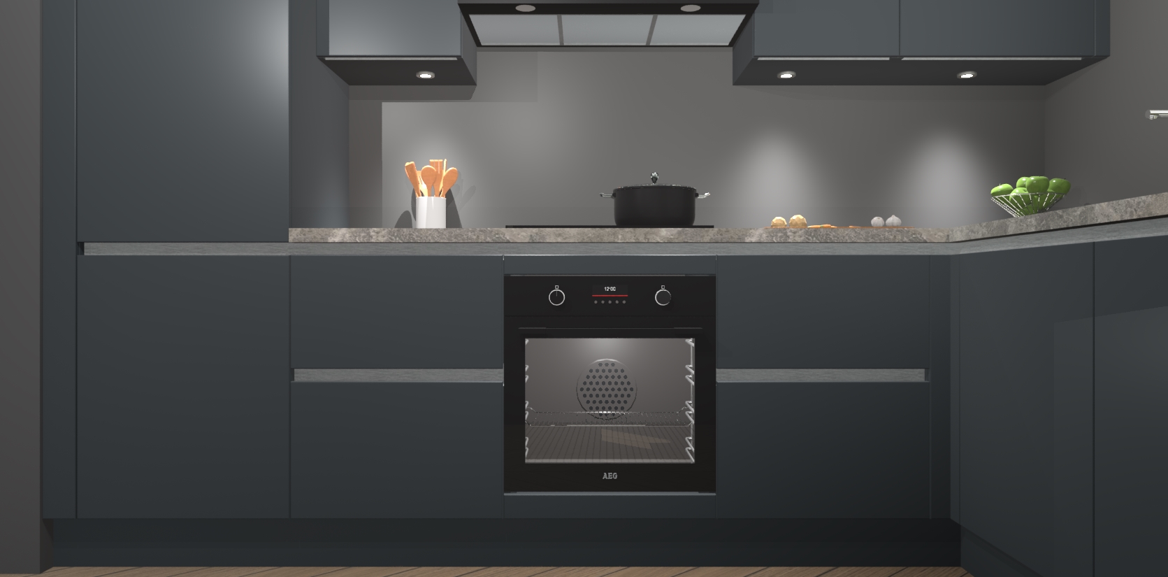 De onyxgrijze greeploze keuken Geneve is uitgerust met 5 inbouwapparaten - een oven, inductiekookplaat, afzuigkap, vaatwasser en koelkast - voor al uw kook- en bewaarbehoeftes. U kunt deze apparaten desgewenst eenvoudig upgraden naar AEG of de oven omruilen voor een combimagnetron na het plaatsen van uw bestelling. En met de soft close deuren, voldoende opbergruimte en kasten die voorgemonteerd worden geleverd, bent u in een mum van tijd klaar om heerlijke maaltijden te bereiden!