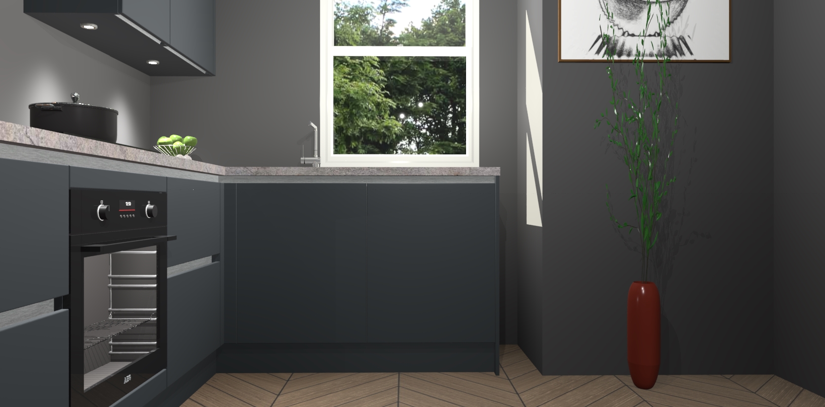 De onyxgrijze greeploze keuken Geneve is uitgerust met 5 inbouwapparaten - een oven, inductiekookplaat, afzuigkap, vaatwasser en koelkast - voor al uw kook- en bewaarbehoeftes. U kunt deze apparaten desgewenst eenvoudig upgraden naar AEG of de oven omruilen voor een combimagnetron na het plaatsen van uw bestelling. En met de soft close deuren, voldoende opbergruimte en kasten die voorgemonteerd worden geleverd, bent u in een mum van tijd klaar om heerlijke maaltijden te bereiden!