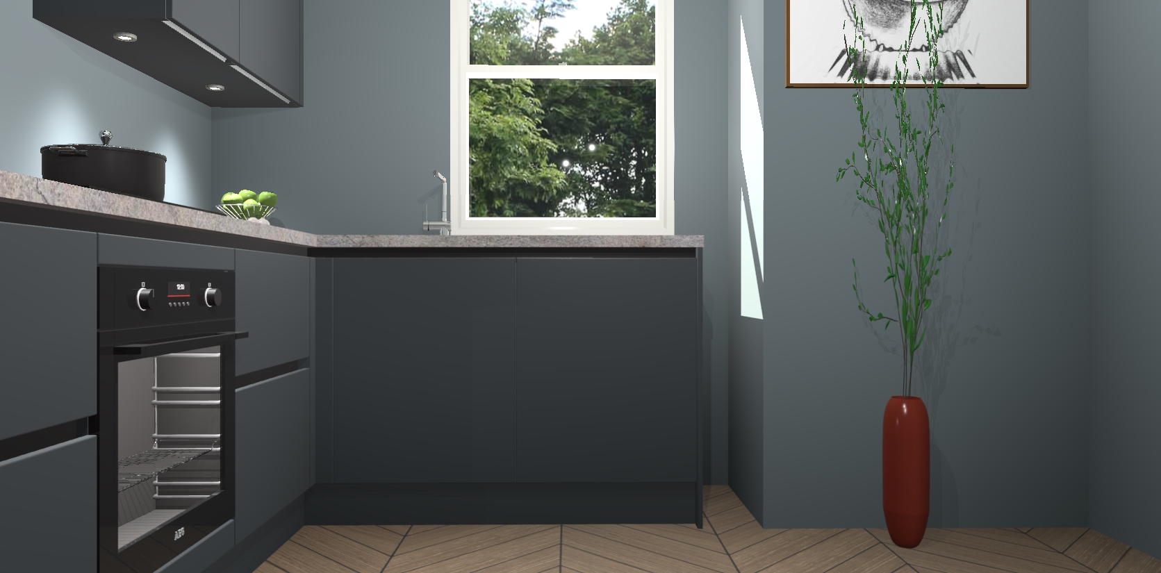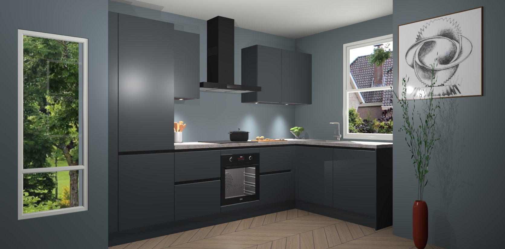 De onyxgrijze greeploze keuken Geneve is uitgerust met 5 inbouwapparaten - een oven, inductiekookplaat, afzuigkap, vaatwasser en koelkast - voor al uw kook- en bewaarbehoeftes. U kunt deze apparaten desgewenst eenvoudig upgraden naar AEG of de oven omruilen voor een combimagnetron na het plaatsen van uw bestelling. En met de soft close deuren, voldoende opbergruimte en kasten die voorgemonteerd worden geleverd, bent u in een mum van tijd klaar om heerlijke maaltijden te bereiden!