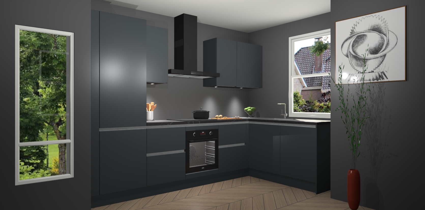 De onyxgrijze greeploze keuken Geneve is uitgerust met 5 inbouwapparaten - een oven, inductiekookplaat, afzuigkap, vaatwasser en koelkast - voor al uw kook- en bewaarbehoeftes. U kunt deze apparaten desgewenst eenvoudig upgraden naar AEG of de oven omruilen voor een combimagnetron na het plaatsen van uw bestelling. En met de soft close deuren, voldoende opbergruimte en kasten die voorgemonteerd worden geleverd, bent u in een mum van tijd klaar om heerlijke maaltijden te bereiden!