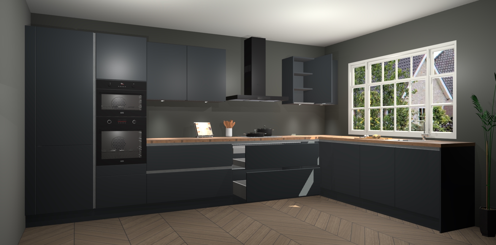 Heeft u nog apparatuur nodig? Geen probleem: de onyxgrijze greeploze keuken Graz bevat vijf ingebouwde apparaten - een oven, inductiekookplaat, afzuigkap, vaatwasser en koelkast - die gemakkelijk kunnen worden bijgewerkt naar AEG na bestelling. En als dat nog niet genoeg is; onze kasten worden pre-geassembleerd geleverd en zijn verkrijgbaar tegen een vastgeroeste lage prijs! U hoeft nooit meer te zoeken naar goede kwaliteit en service want onze producten hebben echt Duitse kwaliteit.