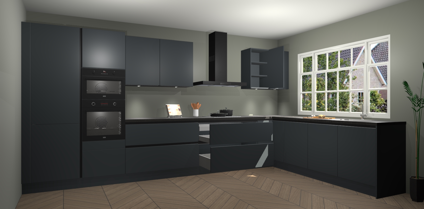Kom dichtbij de perfecte keuken van uw dromen met de onyxgrijze greeploze keuken Graz. Met een prachtige houtlook en eigentijds ontwerp, straalt deze keuken warmte en sfeer uit. Of u nu liefhebber bent van traditionele of moderne stijlen, er is genoeg ruimte om aan al uw behoeften te voldoen.
