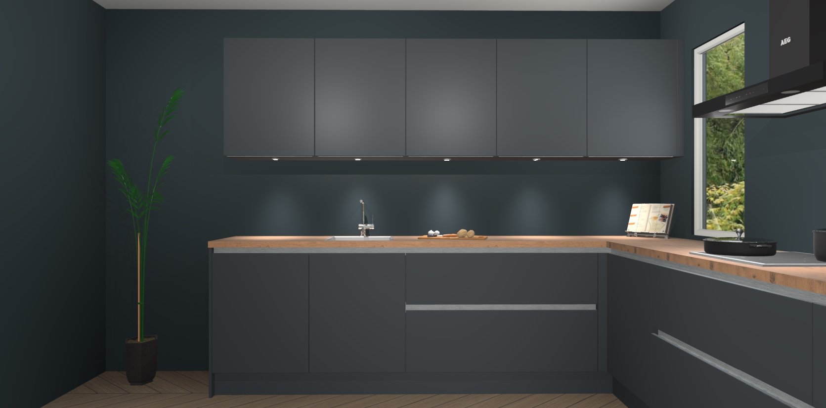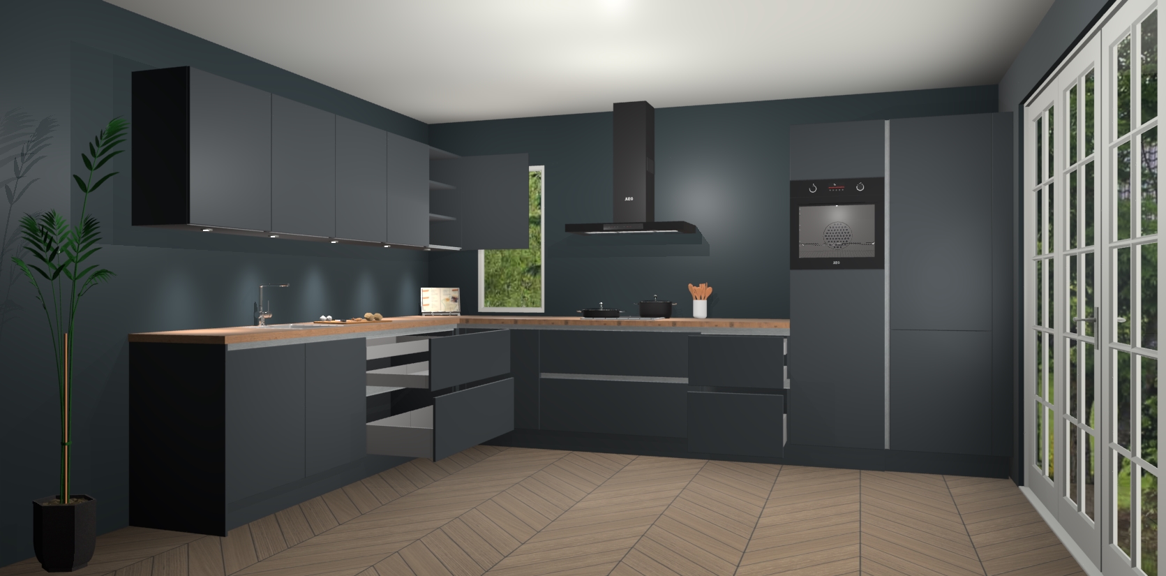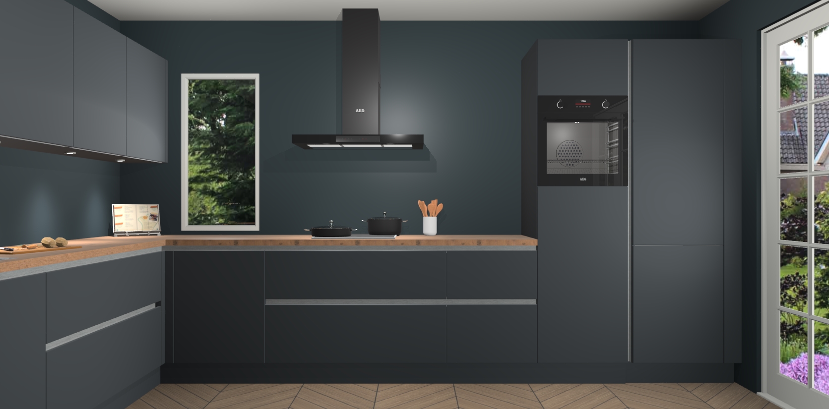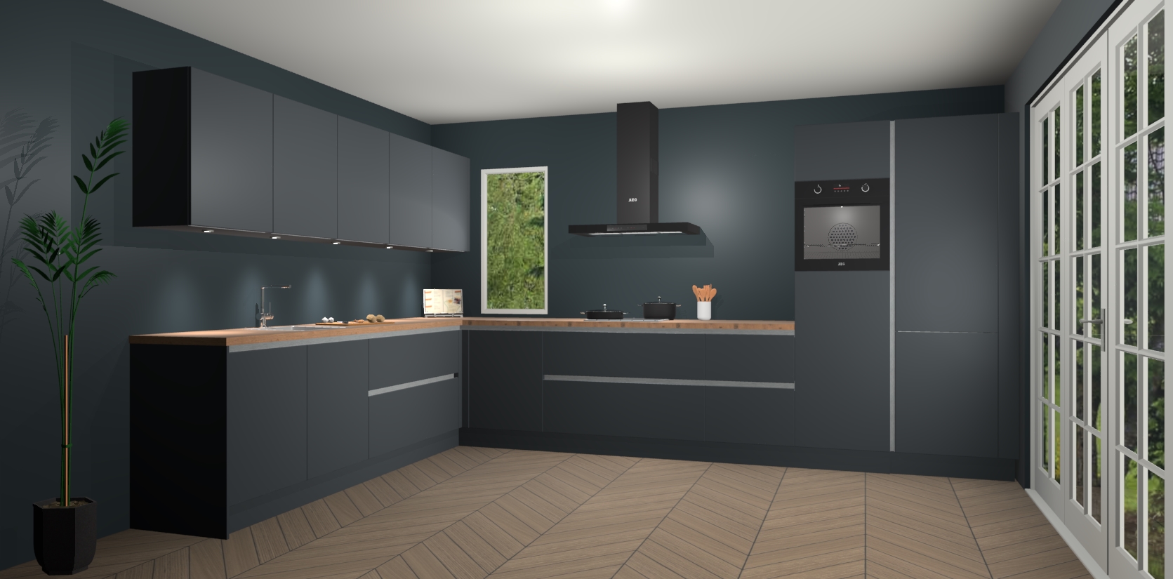 Heeft u nog apparatuur nodig? Geen probleem: de onyxgrijze greeploze keuken Harare bevat vijf ingebouwde apparaten - een oven, inductiekookplaat, afzuigkap, vaatwasser en koelkast - die gemakkelijk kunnen worden bijgewerkt naar AEG na bestelling. En als dat nog niet genoeg is; onze kasten worden pre-geassembleerd geleverd en zijn verkrijgbaar tegen een vastgeroeste lage prijs! U hoeft nooit meer te zoeken naar goede kwaliteit en service want onze producten hebben echt Duitse kwaliteit.