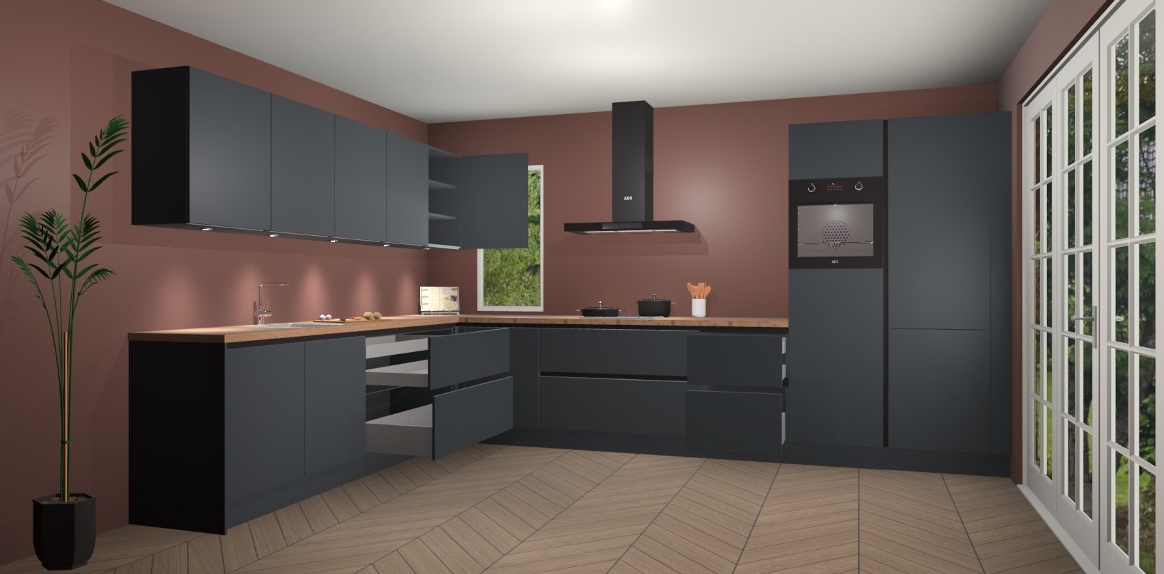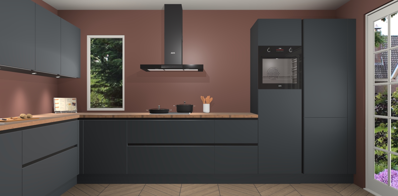 Heeft u nog apparatuur nodig? Geen probleem: de onyxgrijze greeploze keuken Harare bevat vijf ingebouwde apparaten - een oven, inductiekookplaat, afzuigkap, vaatwasser en koelkast - die gemakkelijk kunnen worden bijgewerkt naar AEG na bestelling. En als dat nog niet genoeg is; onze kasten worden pre-geassembleerd geleverd en zijn verkrijgbaar tegen een vastgeroeste lage prijs! U hoeft nooit meer te zoeken naar goede kwaliteit en service want onze producten hebben echt Duitse kwaliteit.