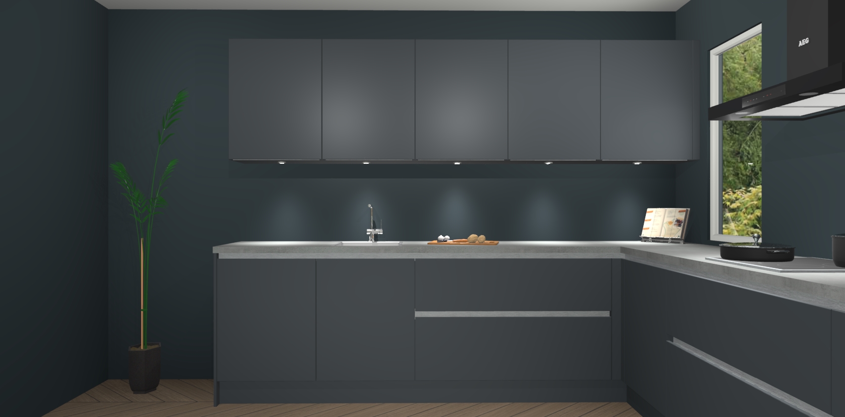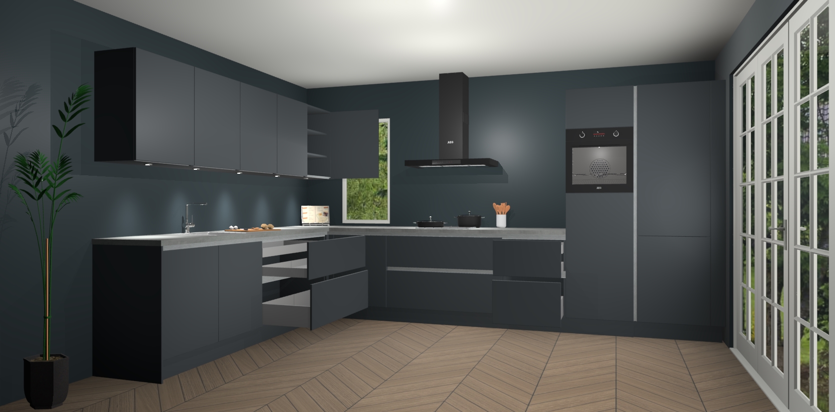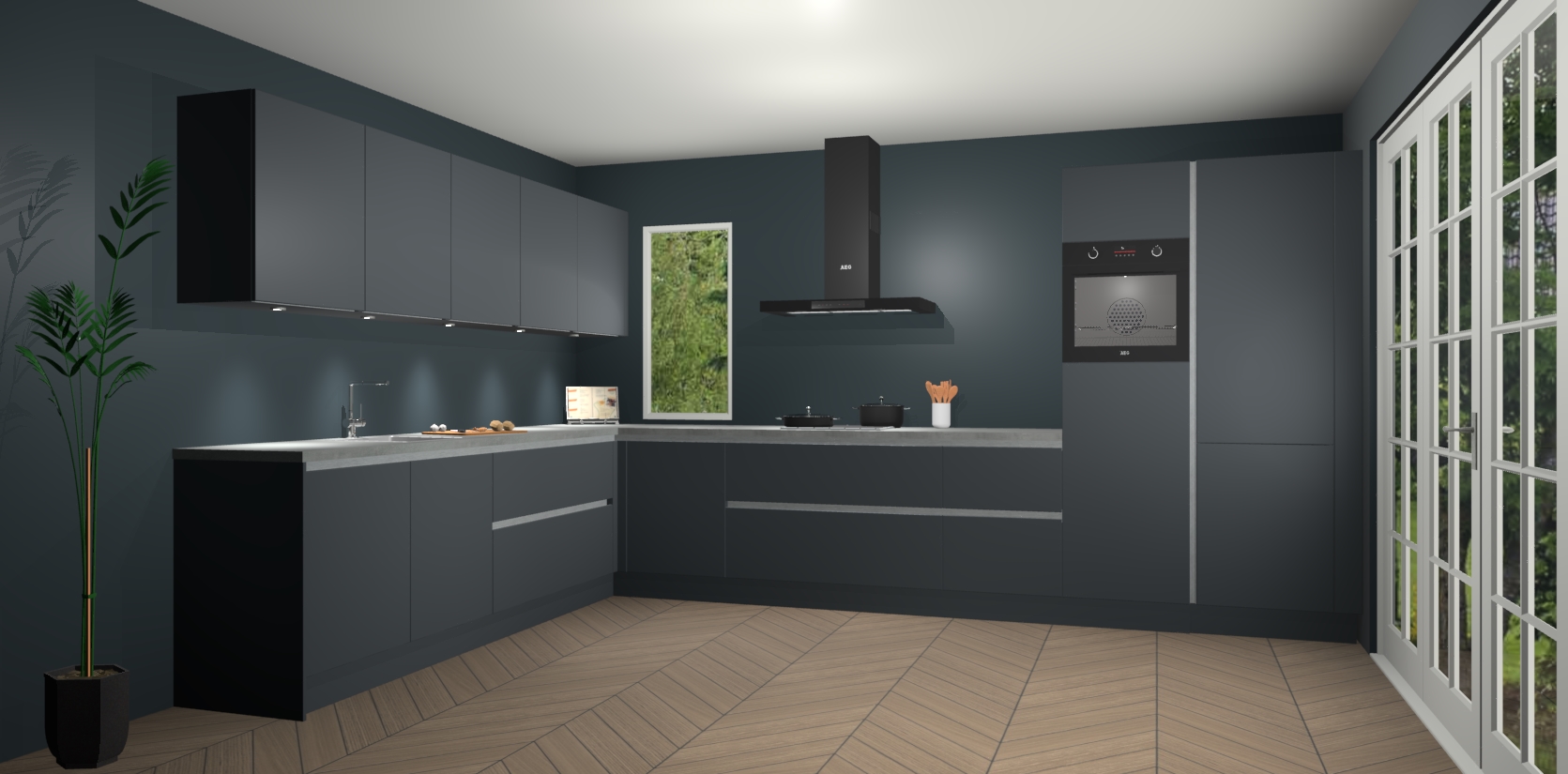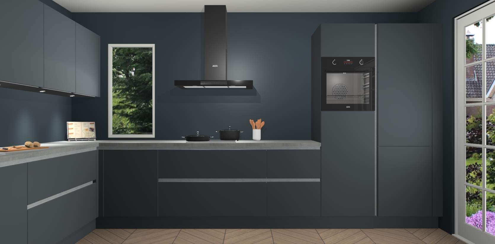 Heeft u nog apparatuur nodig? Geen probleem: de onyxgrijze greeploze keuken Harare bevat vijf ingebouwde apparaten - een oven, inductiekookplaat, afzuigkap, vaatwasser en koelkast - die gemakkelijk kunnen worden bijgewerkt naar AEG na bestelling. En als dat nog niet genoeg is; onze kasten worden pre-geassembleerd geleverd en zijn verkrijgbaar tegen een vastgeroeste lage prijs! U hoeft nooit meer te zoeken naar goede kwaliteit en service want onze producten hebben echt Duitse kwaliteit.