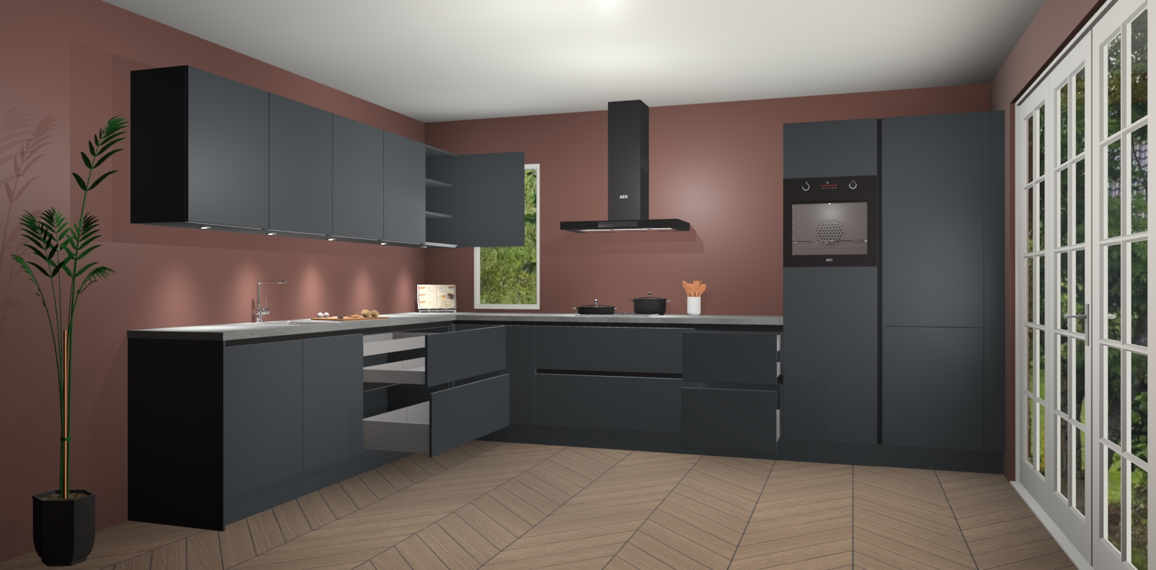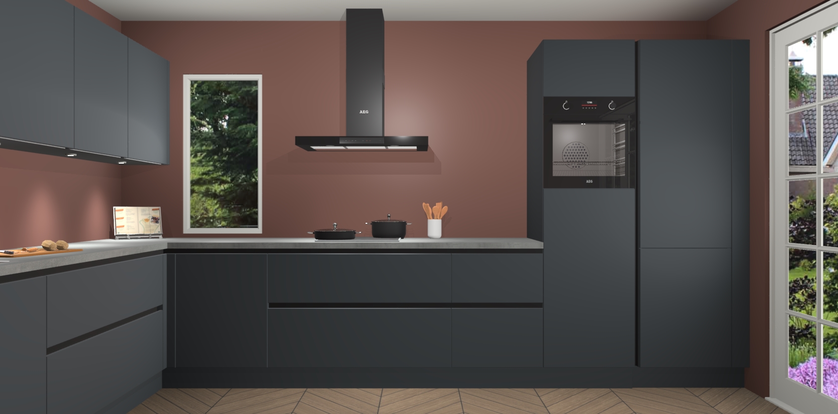 Heeft u nog apparatuur nodig? Geen probleem: de onyxgrijze greeploze keuken Harare bevat vijf ingebouwde apparaten - een oven, inductiekookplaat, afzuigkap, vaatwasser en koelkast - die gemakkelijk kunnen worden bijgewerkt naar AEG na bestelling. En als dat nog niet genoeg is; onze kasten worden pre-geassembleerd geleverd en zijn verkrijgbaar tegen een vastgeroeste lage prijs! U hoeft nooit meer te zoeken naar goede kwaliteit en service want onze producten hebben echt Duitse kwaliteit.