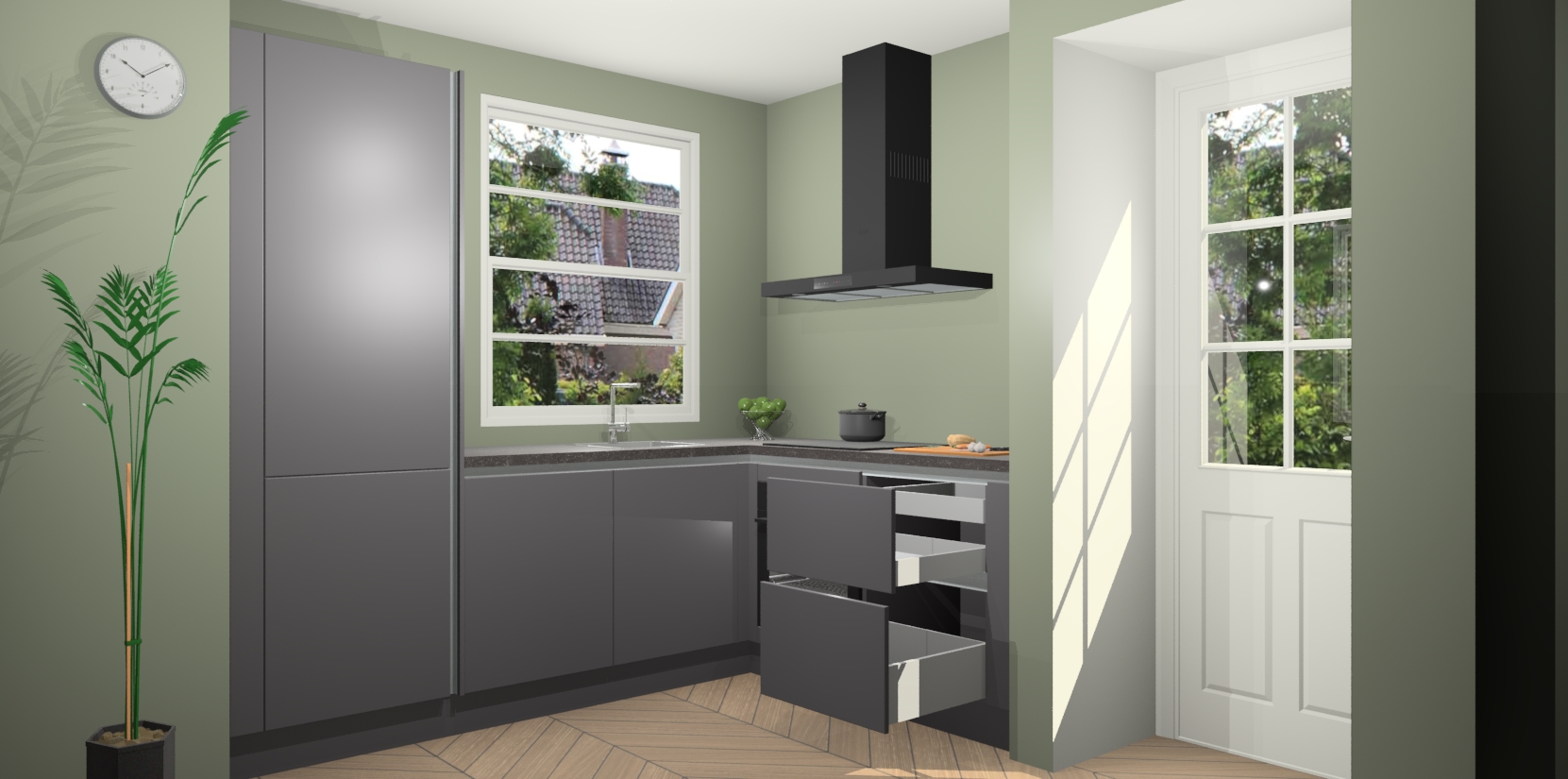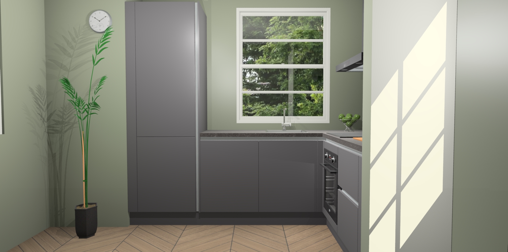 Plus: de Onyxgrijze greeploze keuken Harbin is kant en klaar voorzien van 5 inbouwapparaten. U krijgt er direct bij: een oven, inductiekookplaat, afzuigkap, vaatwasser én koelkast. En als dat nog niet luxueus genoeg is, heeft u nog de mogelijkheid om de apparaten te upgraden naar AEG of om uw oven te vervangen door een combimagnetron. Ook fijn van voordeel zijn de softclosing-deuren die ervoor zorgen dat u geen geluid hoeft te maken wanneer u weer uw koelkastdeurtjes dichtdoet!