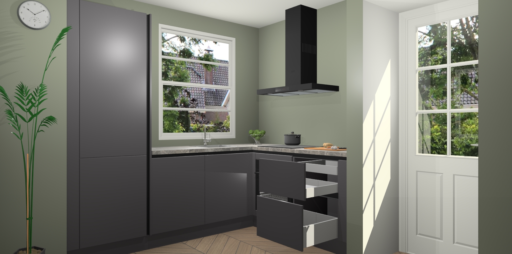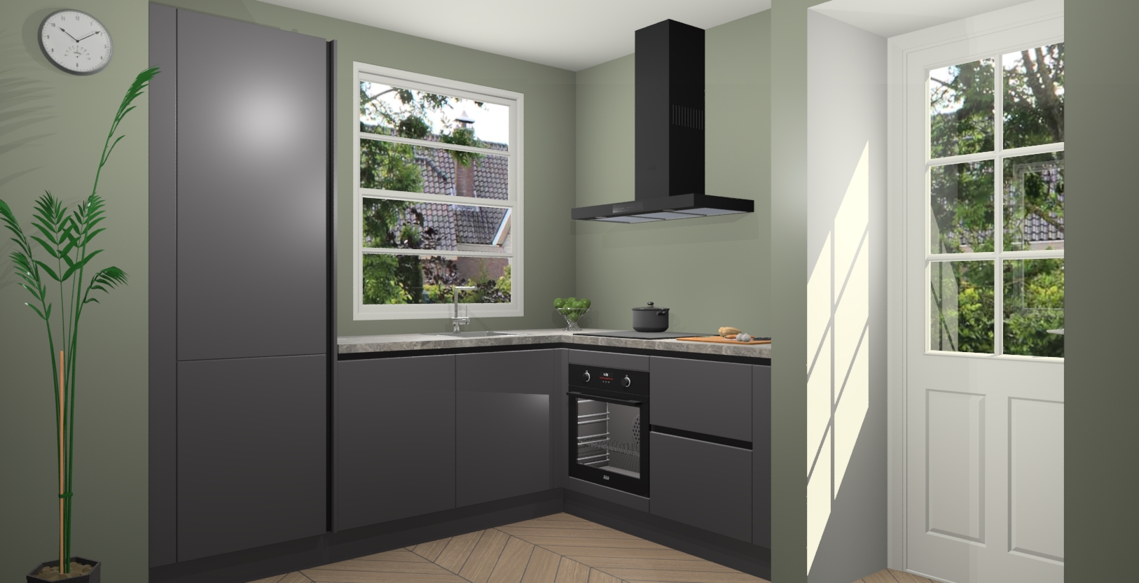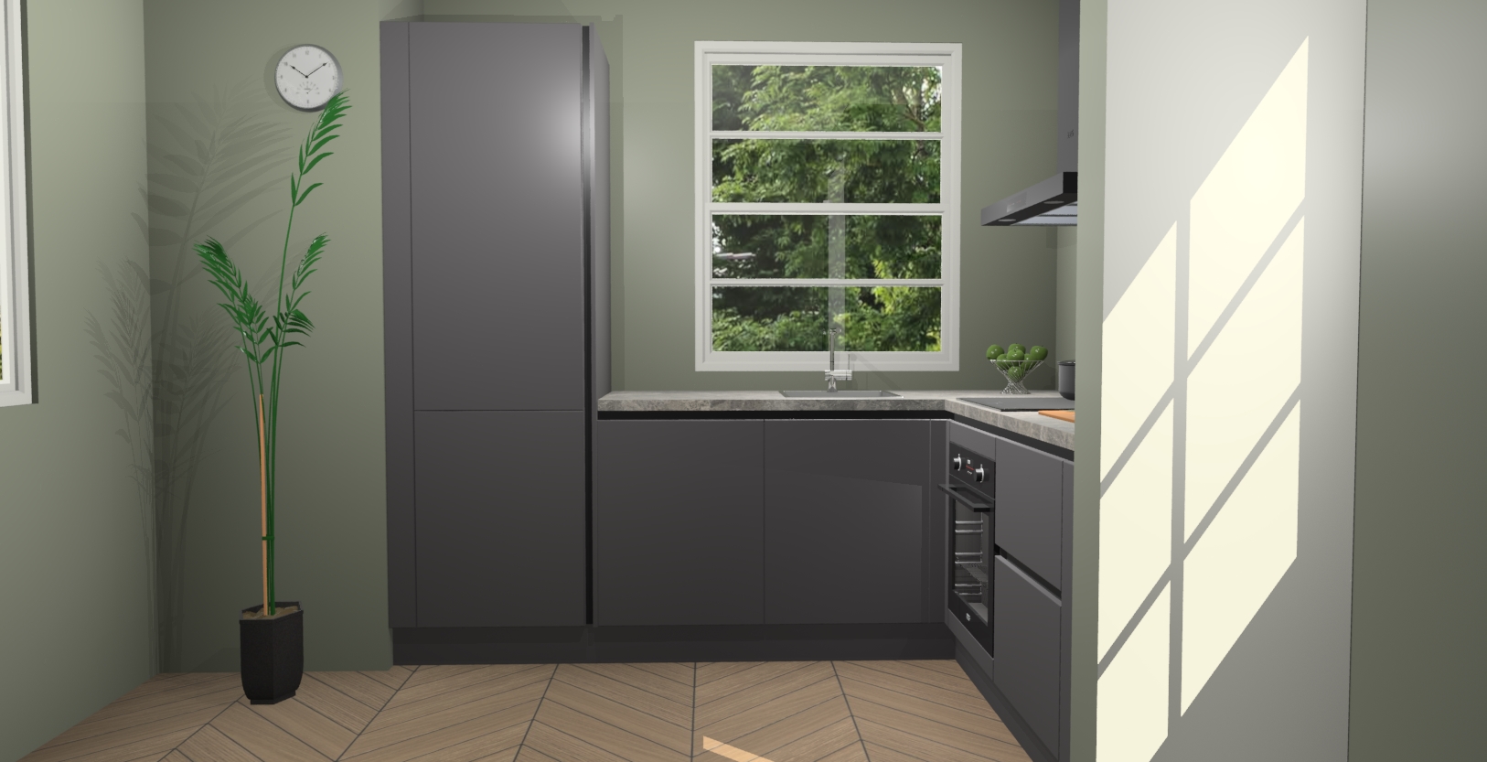 Wilt u een echte aanwinst voor uw keuken, maar bent u op zoek naar iets specialers dan de standaardkeukens? Kies dan voor de Onyxgrijze greeploze keuken Harbin! Dit prachtige hoekkeukenontwerp geeft u alle ruimte om optimaal te genieten van heerlijk koken. Het uitmuntende afwerkingsniveau, de fraaie houtstructuur en de sfeervolle zwarte grepen maken van de Onyxgrijze greeploze keuken Harbin de perfecte keuze voor zowel enthousiaste thuiskoks als design-minded interieurliefhebbers.