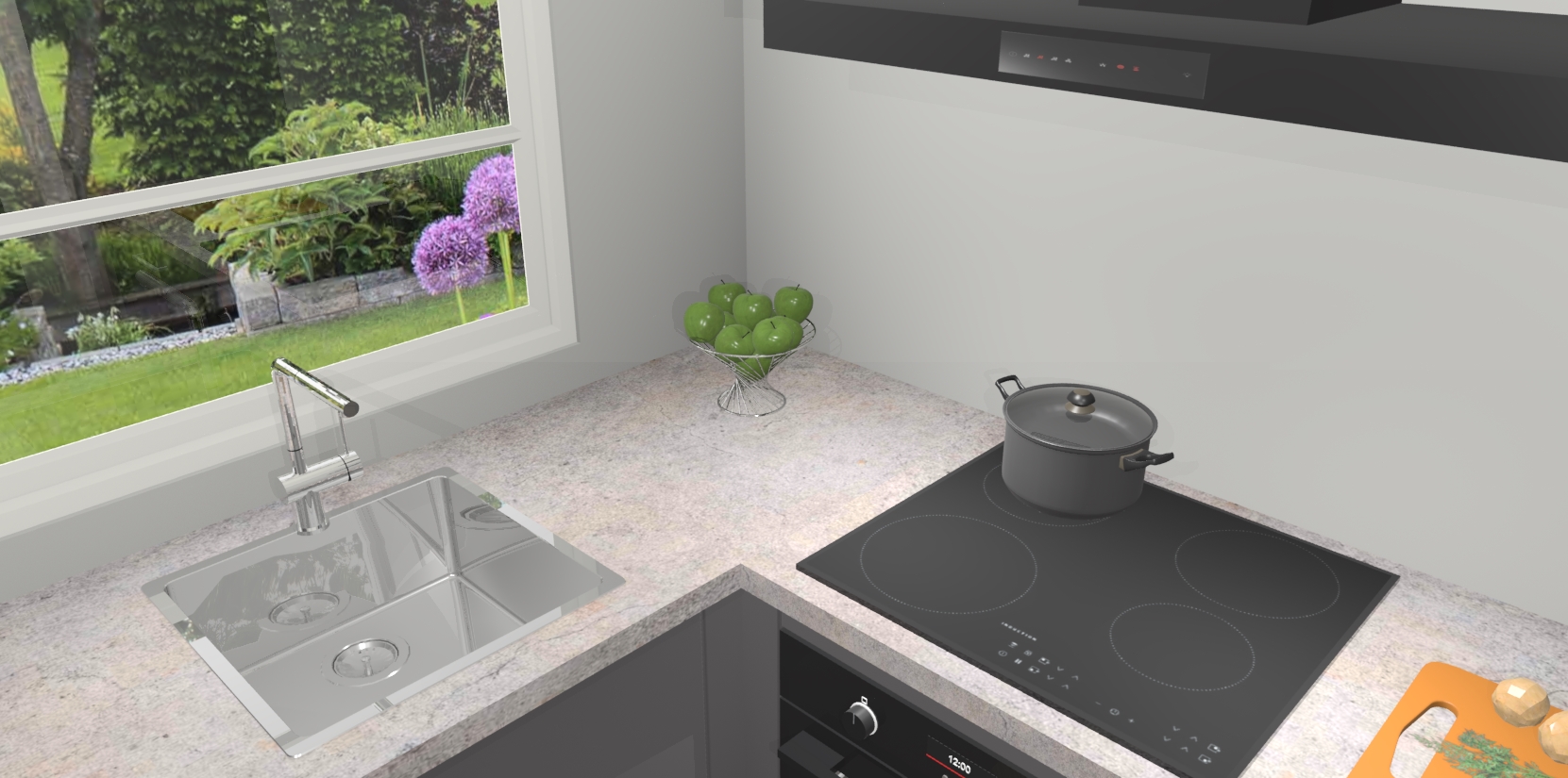 Wilt u een echte aanwinst voor uw keuken, maar bent u op zoek naar iets specialers dan de standaardkeukens? Kies dan voor de Onyxgrijze greeploze keuken Harbin! Dit prachtige hoekkeukenontwerp geeft u alle ruimte om optimaal te genieten van heerlijk koken. Het uitmuntende afwerkingsniveau, de fraaie houtstructuur en de sfeervolle zwarte grepen maken van de Onyxgrijze greeploze keuken Harbin de perfecte keuze voor zowel enthousiaste thuiskoks als design-minded interieurliefhebbers.