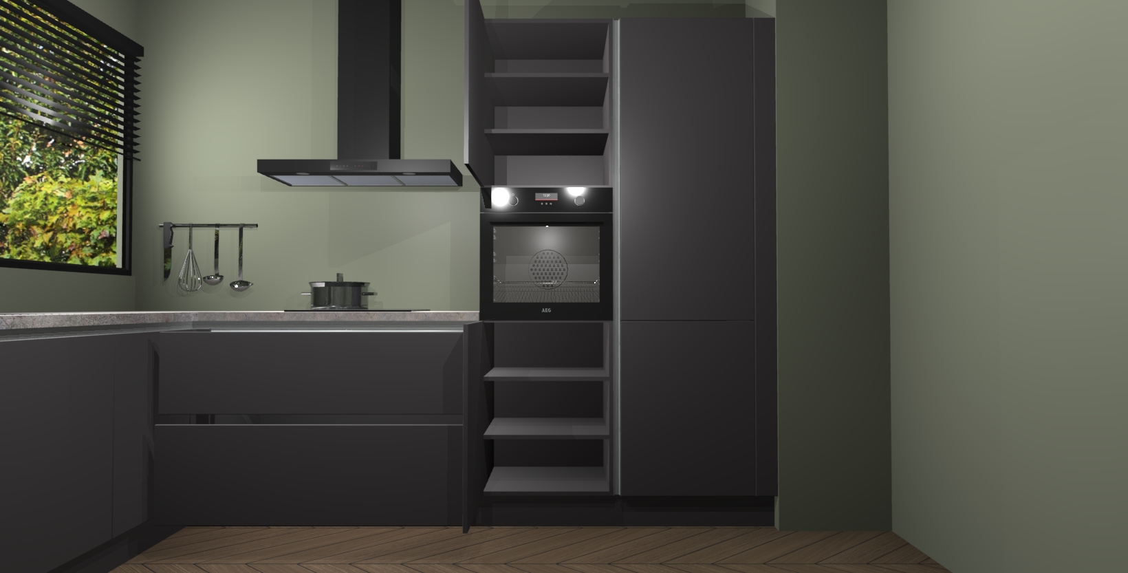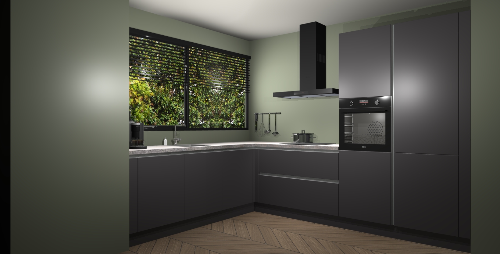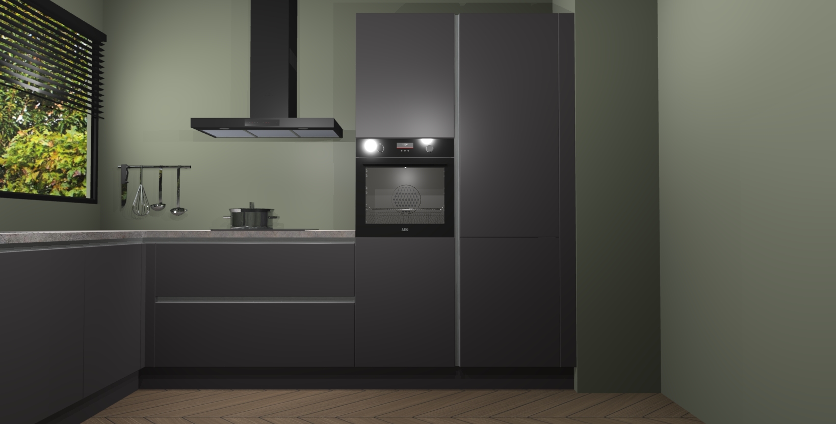 Met een modern, tijdloos design en ruime opslagruimte, zult u zich in no-time thuis voelen in uw nieuwe keuken. Uw leven wordt eenvoudiger met de soft-close deuren die voor het ultieme stille comfort zorgen - geen geluid dat u stoort terwijl u kookt. Ook is de keuken voorzien van 5 ingebouwde apparaten: een oven, inductie kookplaat, afzuigkap, vaatwasser en koelkast. Deze kunnen gemakkelijk na bestelling worden bijgewerkt naar AEG - waardoor uw luxe ervaring compleet is.