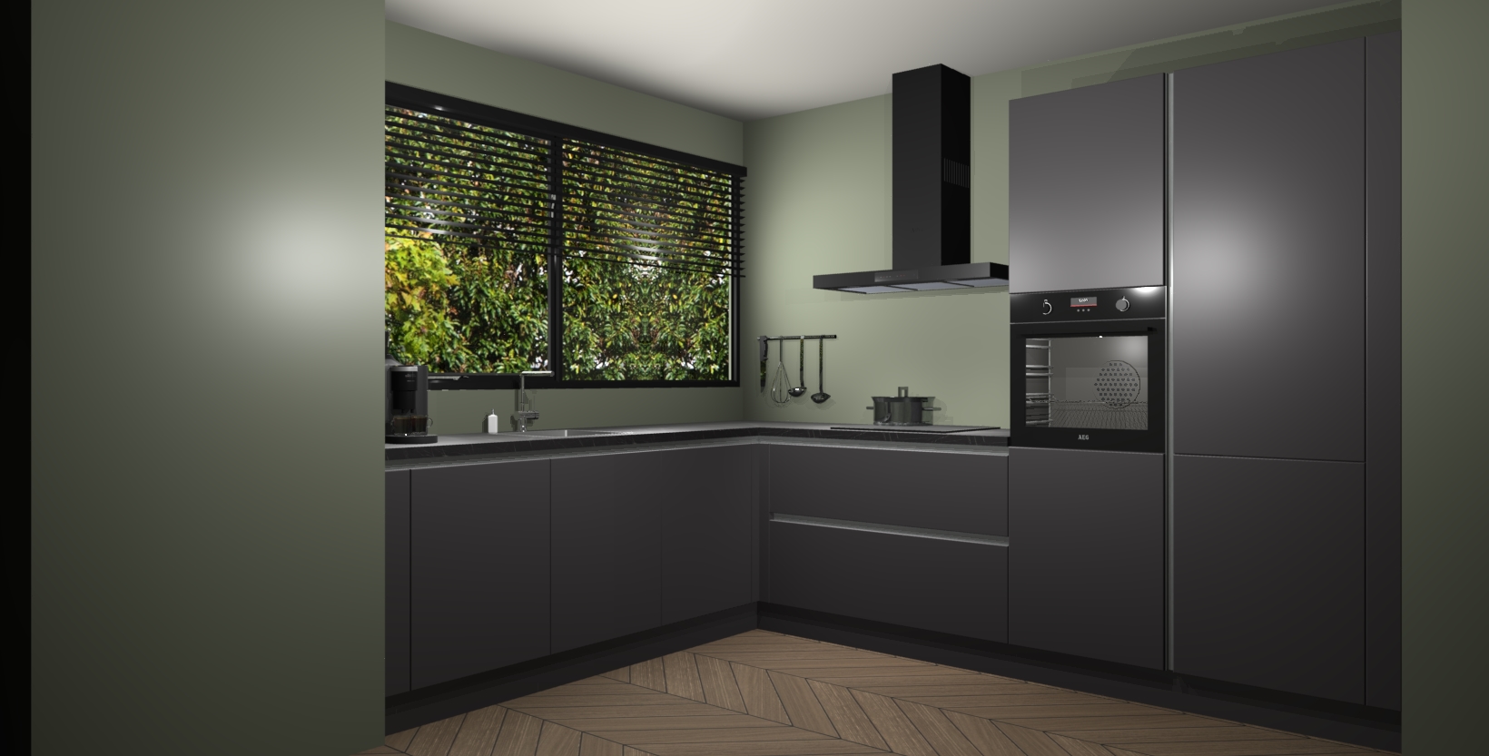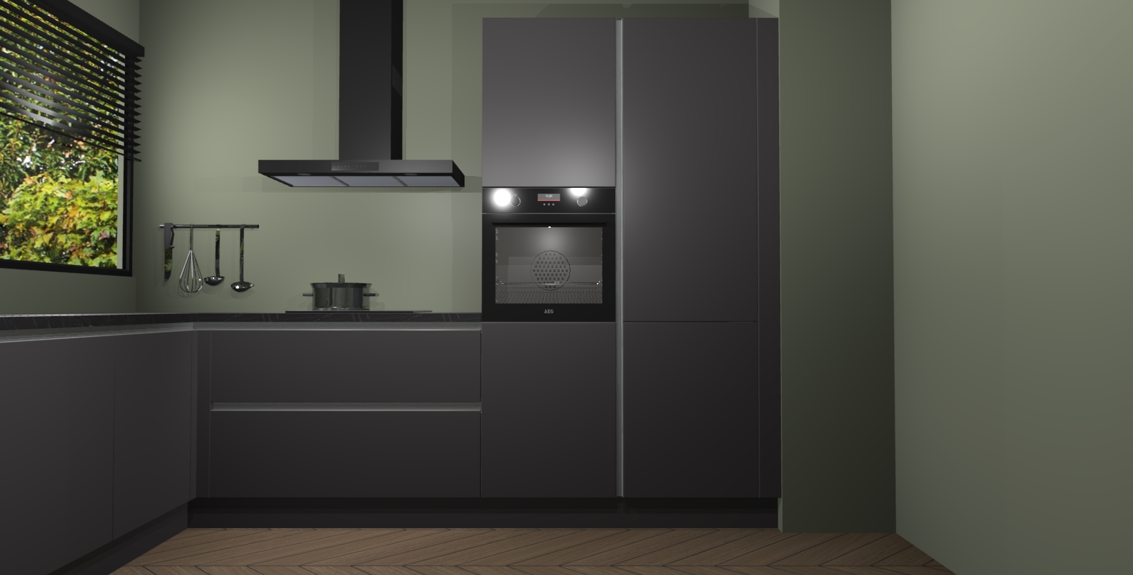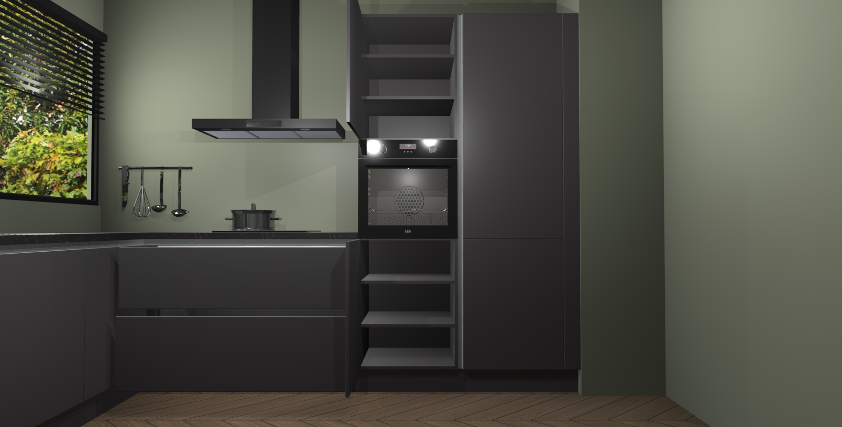 Met een modern, tijdloos design en ruime opslagruimte, zult u zich in no-time thuis voelen in uw nieuwe keuken. Uw leven wordt eenvoudiger met de soft-close deuren die voor het ultieme stille comfort zorgen - geen geluid dat u stoort terwijl u kookt. Ook is de keuken voorzien van 5 ingebouwde apparaten: een oven, inductie kookplaat, afzuigkap, vaatwasser en koelkast. Deze kunnen gemakkelijk na bestelling worden bijgewerkt naar AEG - waardoor uw luxe ervaring compleet is.