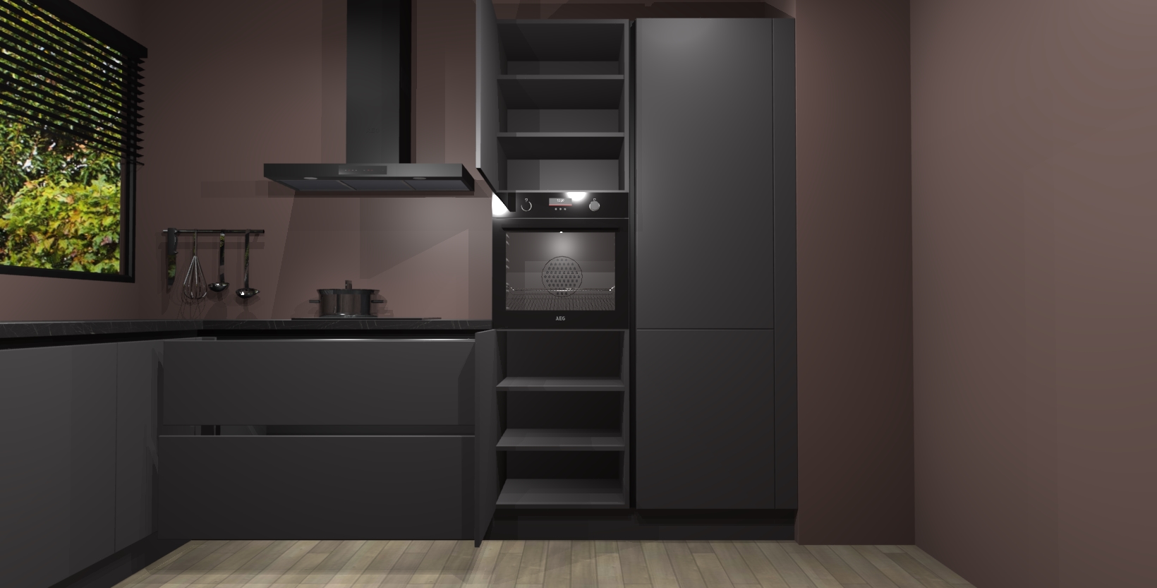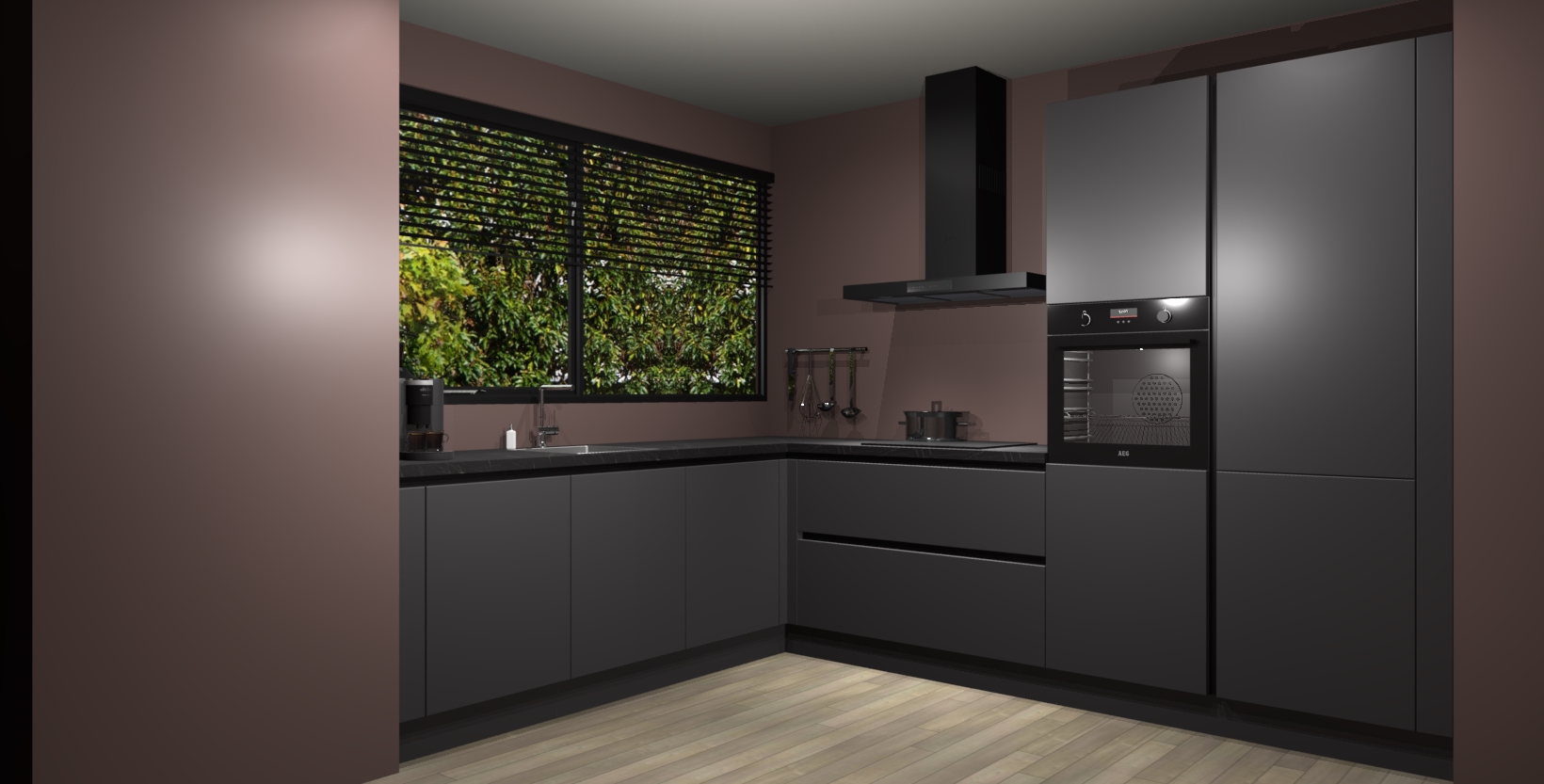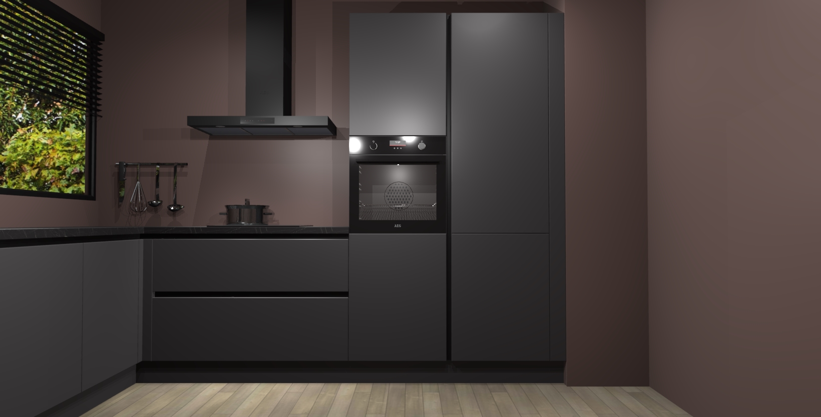 Met een modern, tijdloos design en ruime opslagruimte, zult u zich in no-time thuis voelen in uw nieuwe keuken. Uw leven wordt eenvoudiger met de soft-close deuren die voor het ultieme stille comfort zorgen - geen geluid dat u stoort terwijl u kookt. Ook is de keuken voorzien van 5 ingebouwde apparaten: een oven, inductie kookplaat, afzuigkap, vaatwasser en koelkast. Deze kunnen gemakkelijk na bestelling worden bijgewerkt naar AEG - waardoor uw luxe ervaring compleet is.