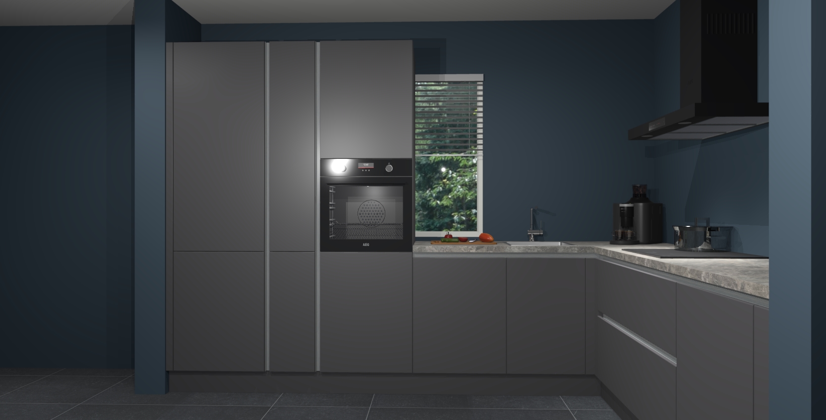 Met een modern, tijdloos design en ruime opslagruimte, zult u zich in no-time thuis voelen in uw nieuwe keuken. Uw leven wordt eenvoudiger met de soft-close deuren die voor het ultieme stille comfort zorgen - geen geluid dat u stoort terwijl u kookt. Ook is de keuken voorzien van 5 ingebouwde apparaten: een oven, inductie kookplaat, afzuigkap, vaatwasser en koelkast. Deze kunnen gemakkelijk na bestelling worden bijgewerkt naar AEG - waardoor uw luxe ervaring compleet is.