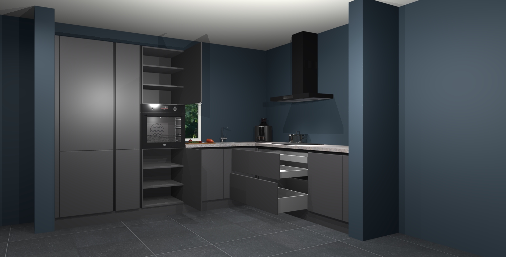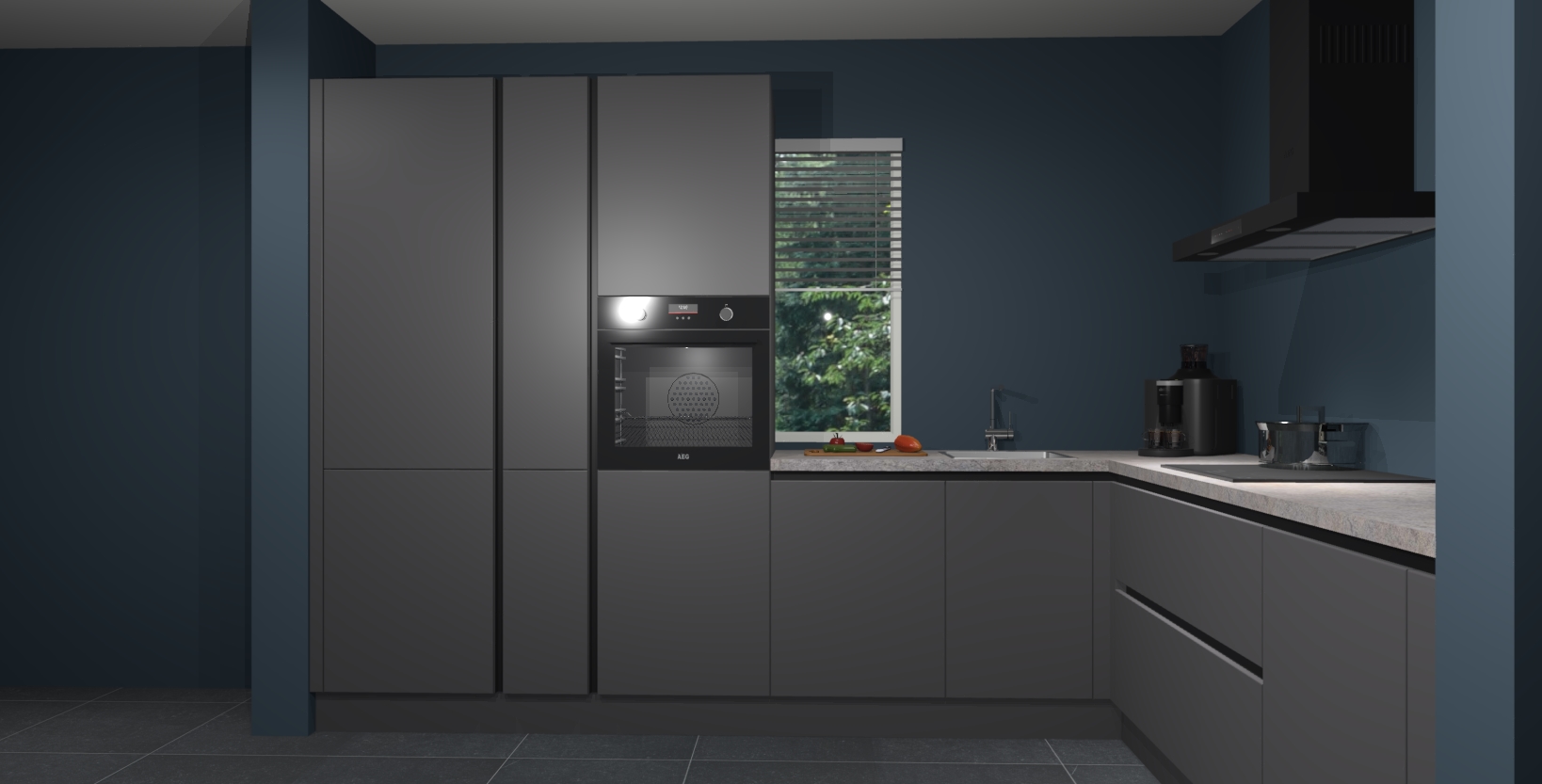 Met een modern, tijdloos design en ruime opslagruimte, zult u zich in no-time thuis voelen in uw nieuwe keuken. Uw leven wordt eenvoudiger met de soft-close deuren die voor het ultieme stille comfort zorgen - geen geluid dat u stoort terwijl u kookt. Ook is de keuken voorzien van 5 ingebouwde apparaten: een oven, inductie kookplaat, afzuigkap, vaatwasser en koelkast. Deze kunnen gemakkelijk na bestelling worden bijgewerkt naar AEG - waardoor uw luxe ervaring compleet is.