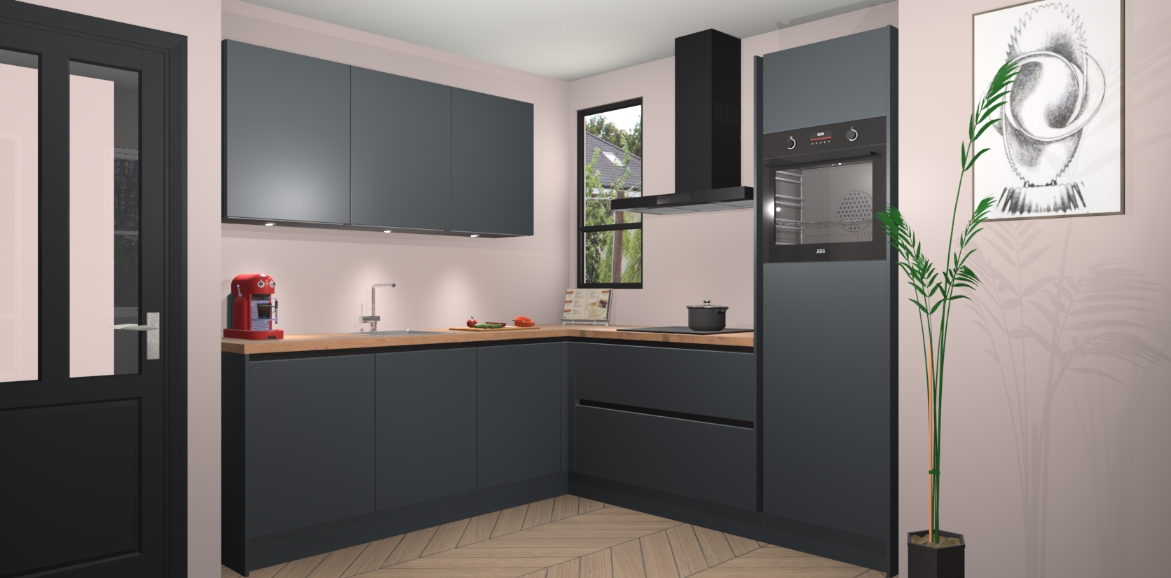 Inclusief plinten, stelpoten en werkblad