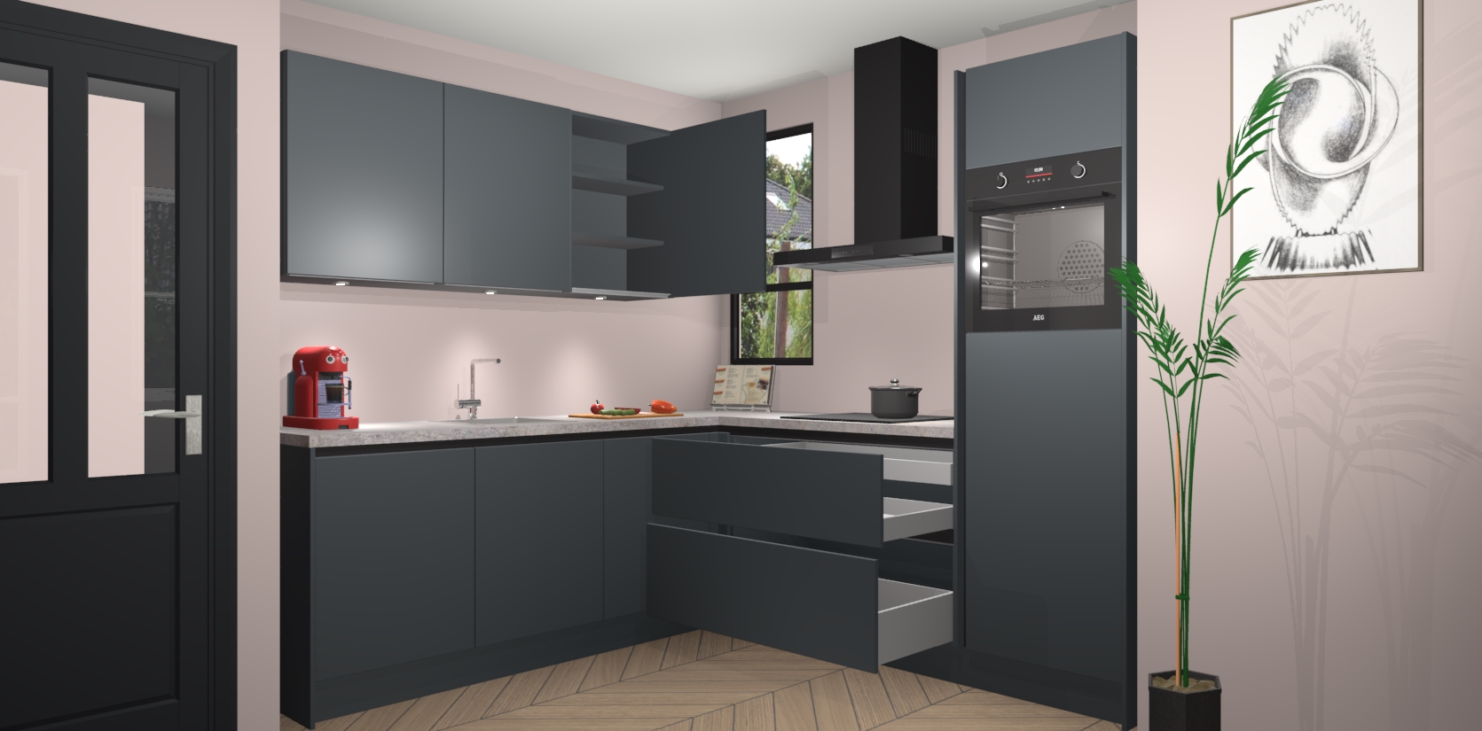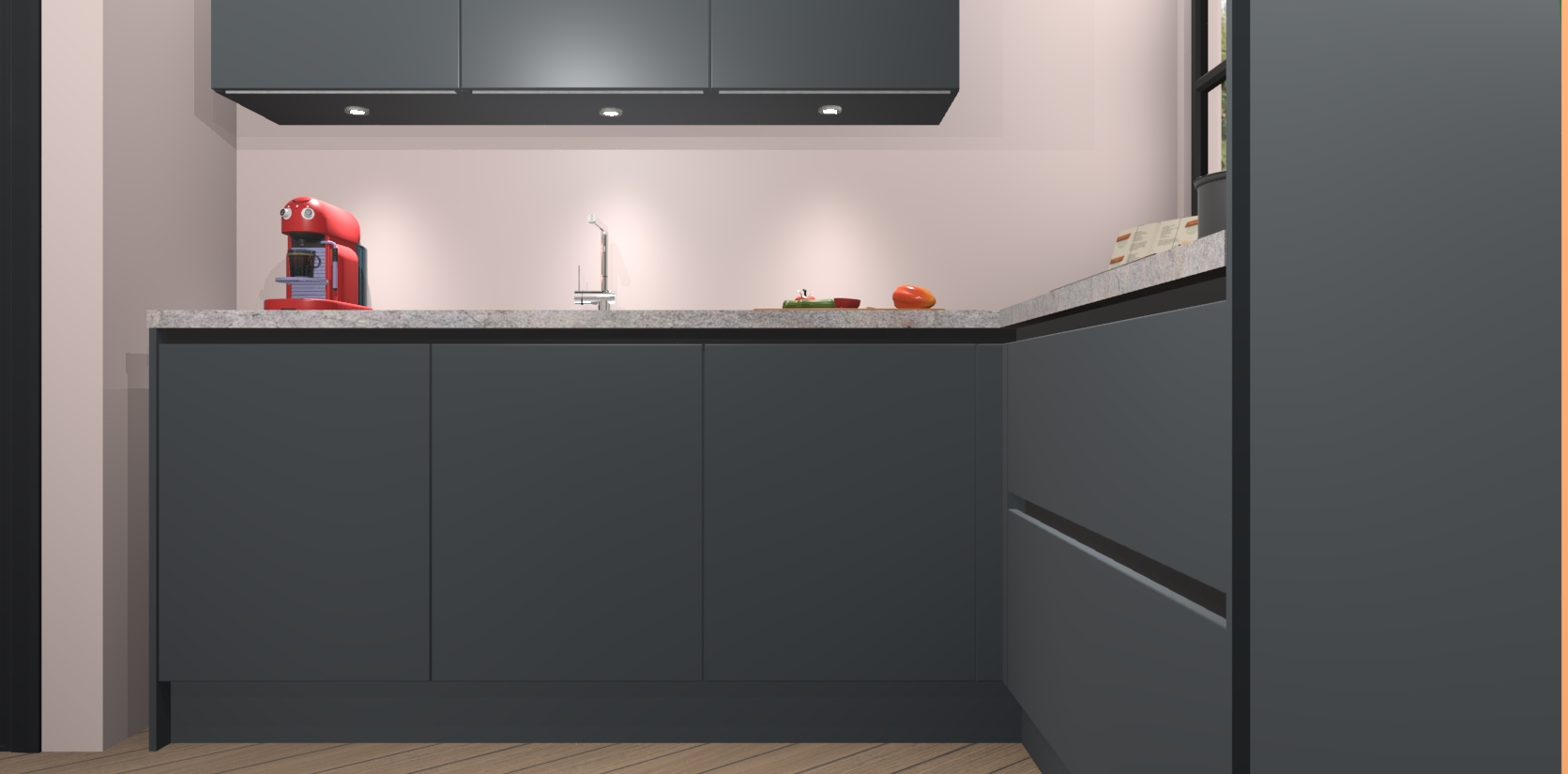 Inclusief plinten, stelpoten en werkblad