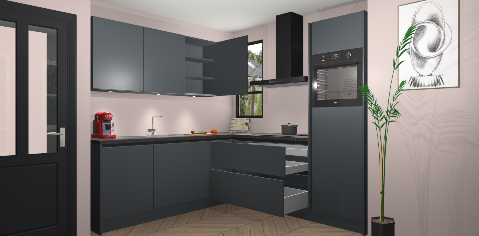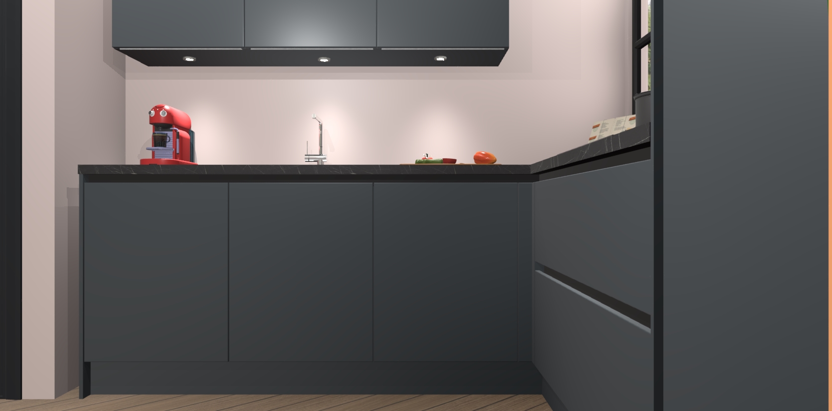 Inclusief plinten, stelpoten en werkblad