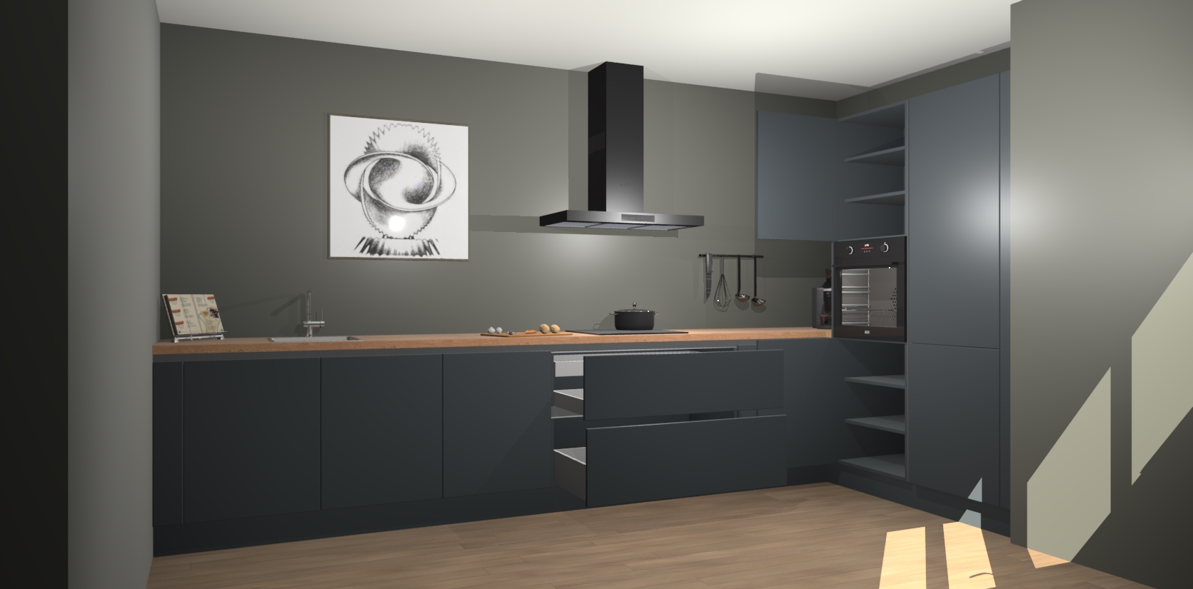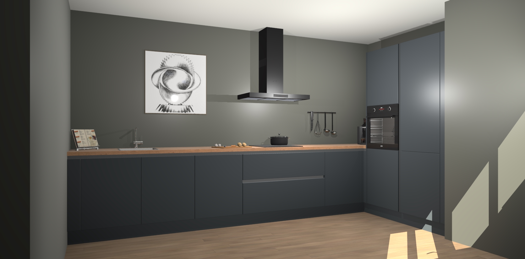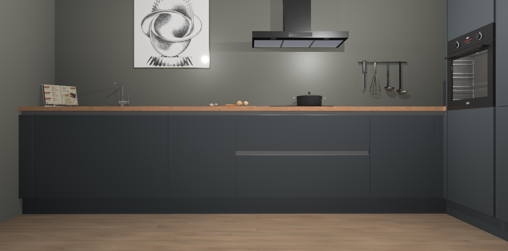 Welkom bij de Onygrijze greeploze keuken Khao Lak. Deze prachtige keuken zal de komende jaren het middelpunt van de belangstelling in uw huis zijn. Uitgerust met vijf inbouwapparaten komt u nooit kookgereedschap tekort. Bovendien geeft de warme houtlook elke ruimte een uitnodigende en tijdloze uitstraling.