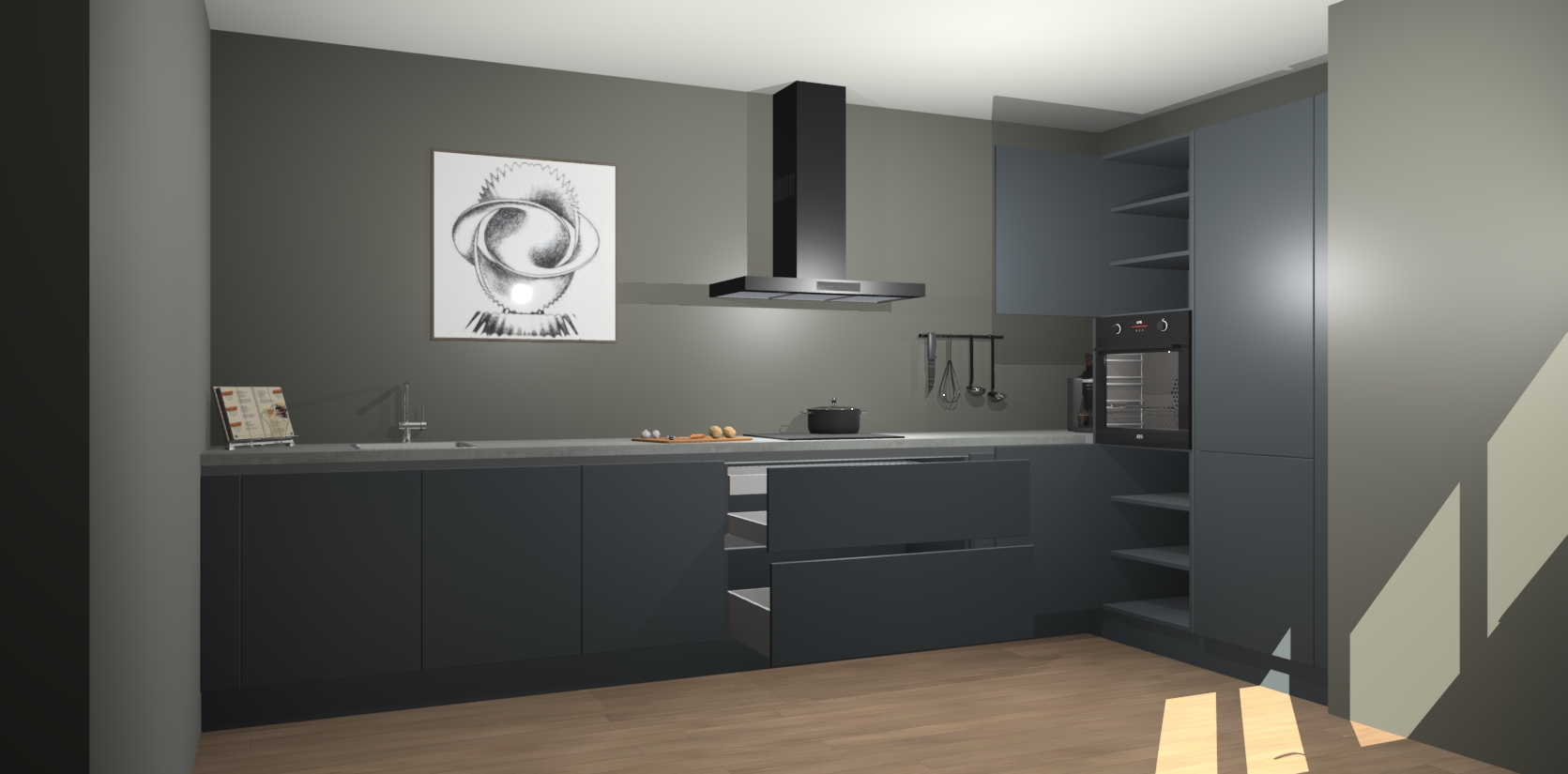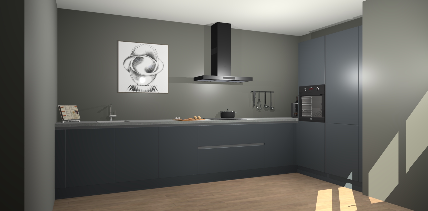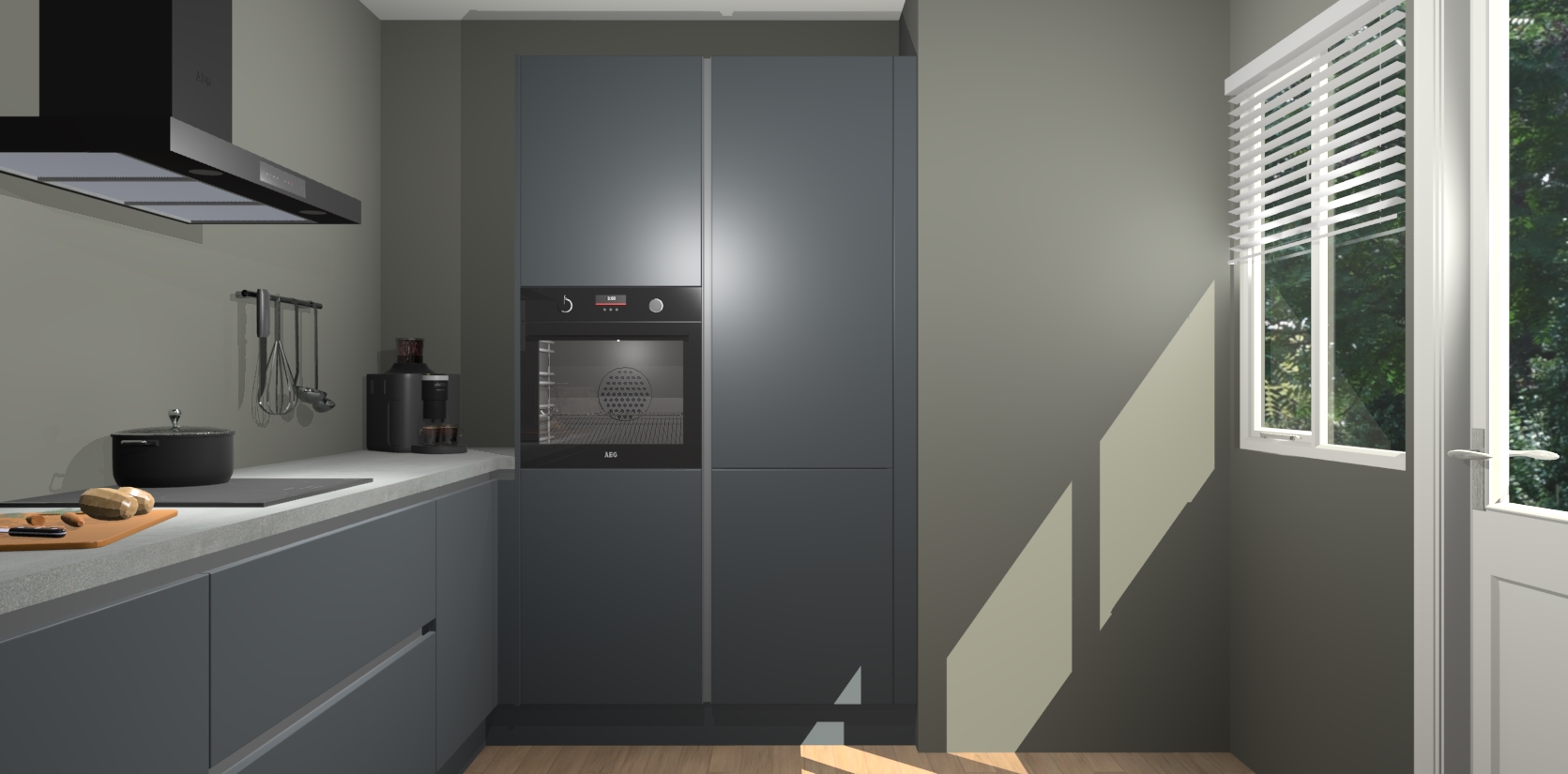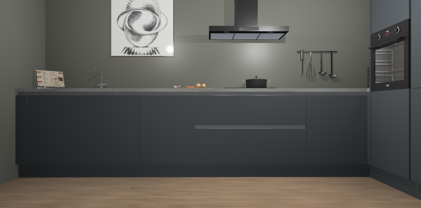 Welkom bij de Onygrijze greeploze keuken Khao Lak. Deze prachtige keuken zal de komende jaren het middelpunt van de belangstelling in uw huis zijn. Uitgerust met vijf inbouwapparaten komt u nooit kookgereedschap tekort. Bovendien geeft de warme houtlook elke ruimte een uitnodigende en tijdloze uitstraling.
