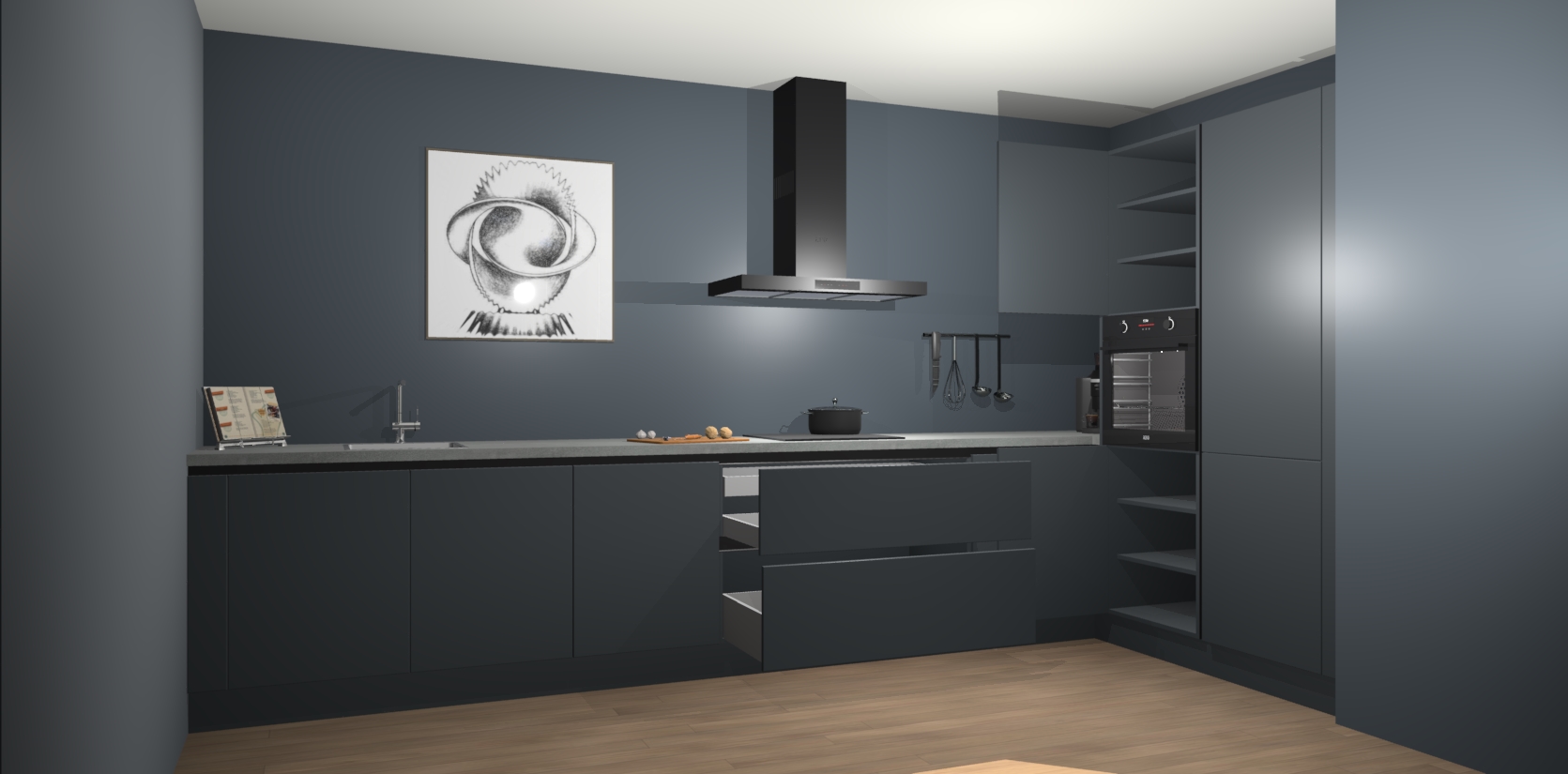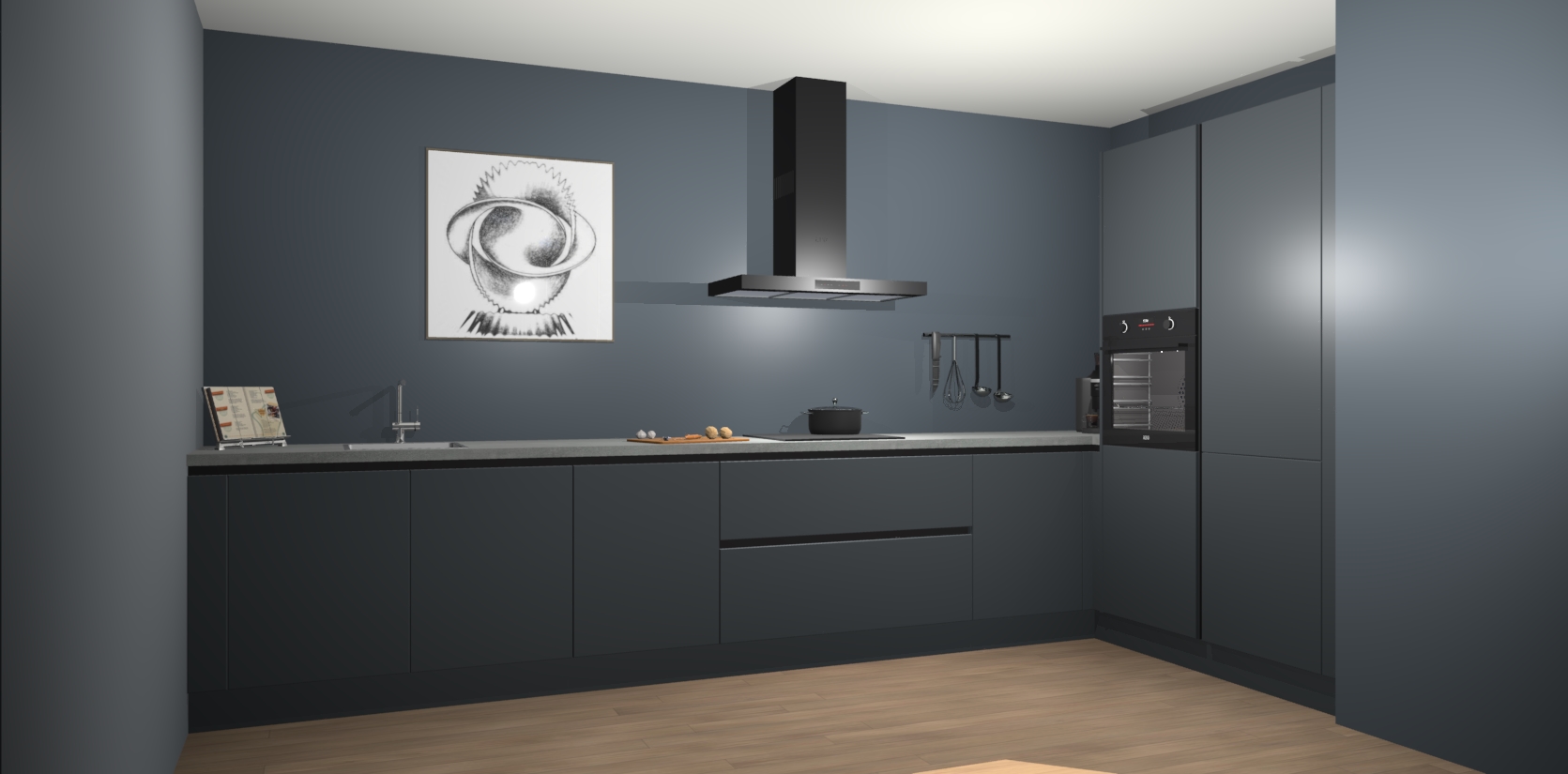 Welkom bij de Onygrijze greeploze keuken Khao Lak. Deze prachtige keuken zal de komende jaren het middelpunt van de belangstelling in uw huis zijn. Uitgerust met vijf inbouwapparaten komt u nooit kookgereedschap tekort. Bovendien geeft de warme houtlook elke ruimte een uitnodigende en tijdloze uitstraling.
