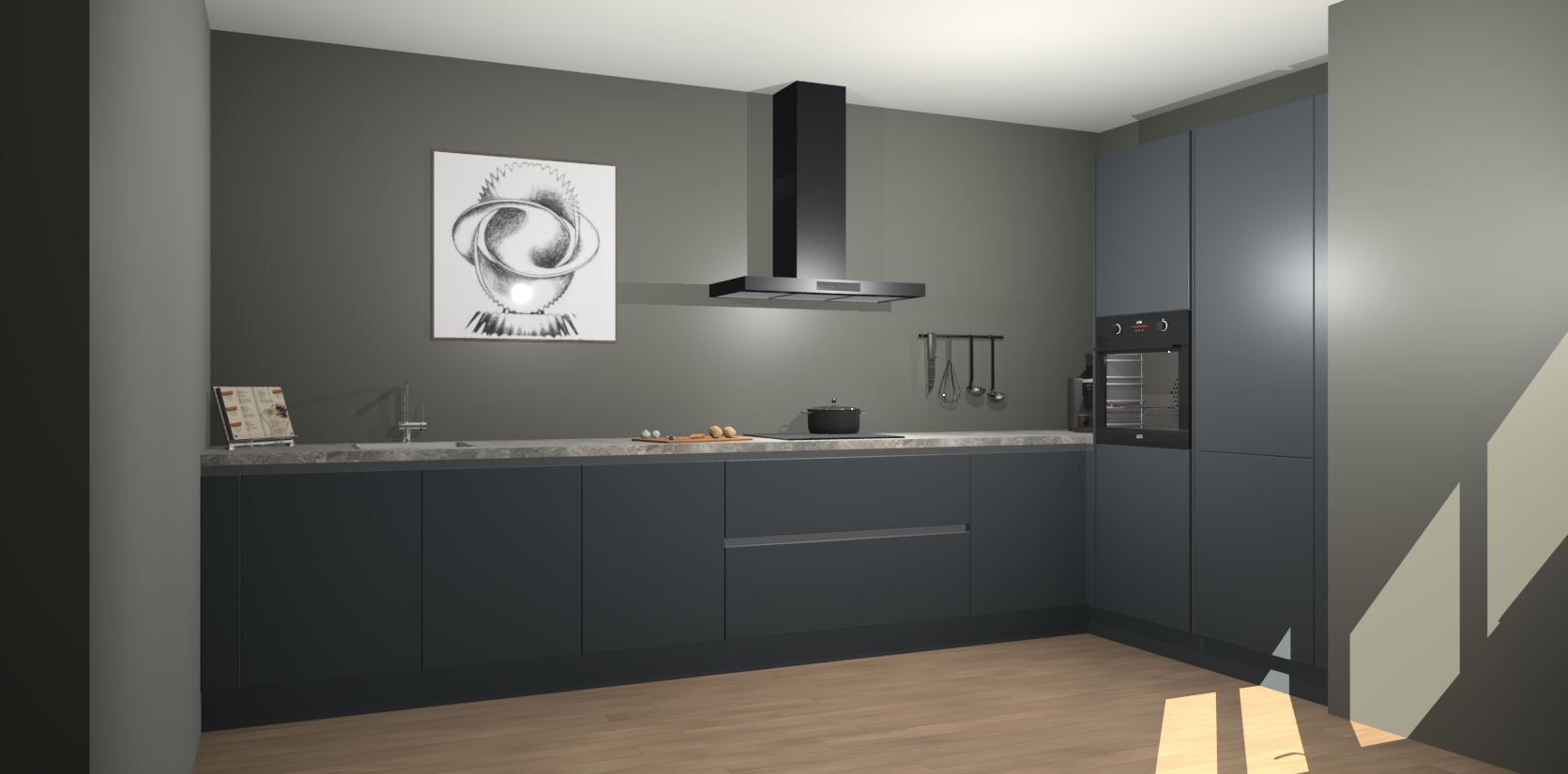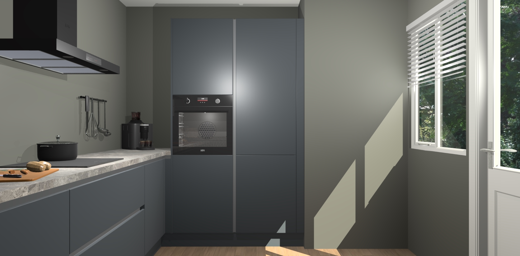 Welkom bij de Onygrijze greeploze keuken Khao Lak. Deze prachtige keuken zal de komende jaren het middelpunt van de belangstelling in uw huis zijn. Uitgerust met vijf inbouwapparaten komt u nooit kookgereedschap tekort. Bovendien geeft de warme houtlook elke ruimte een uitnodigende en tijdloze uitstraling.