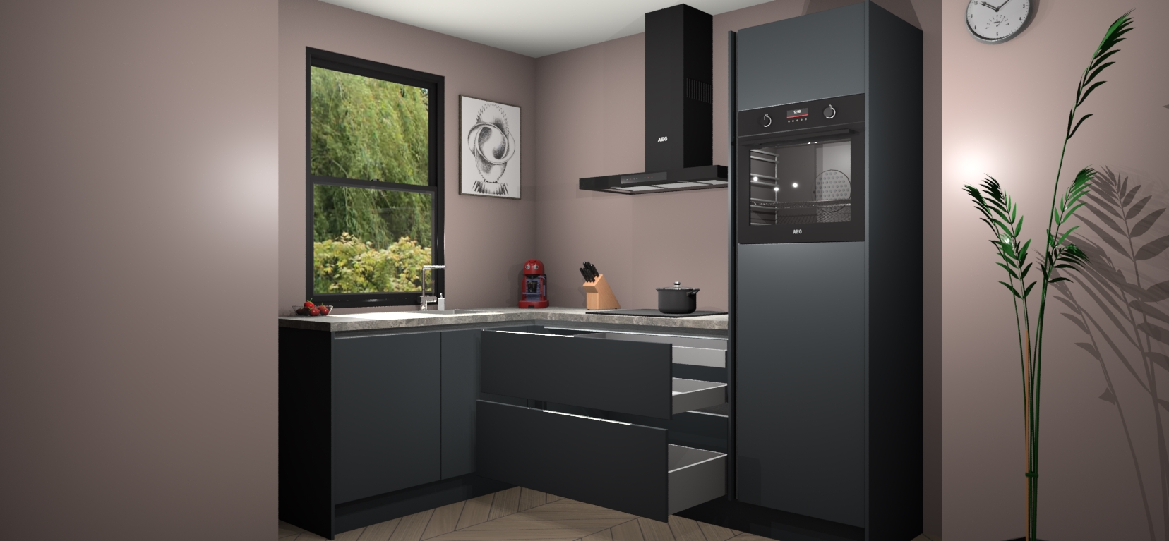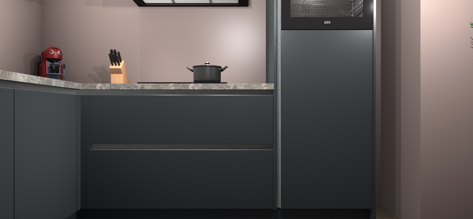 Inclusief plinten, stelpoten en werkblad