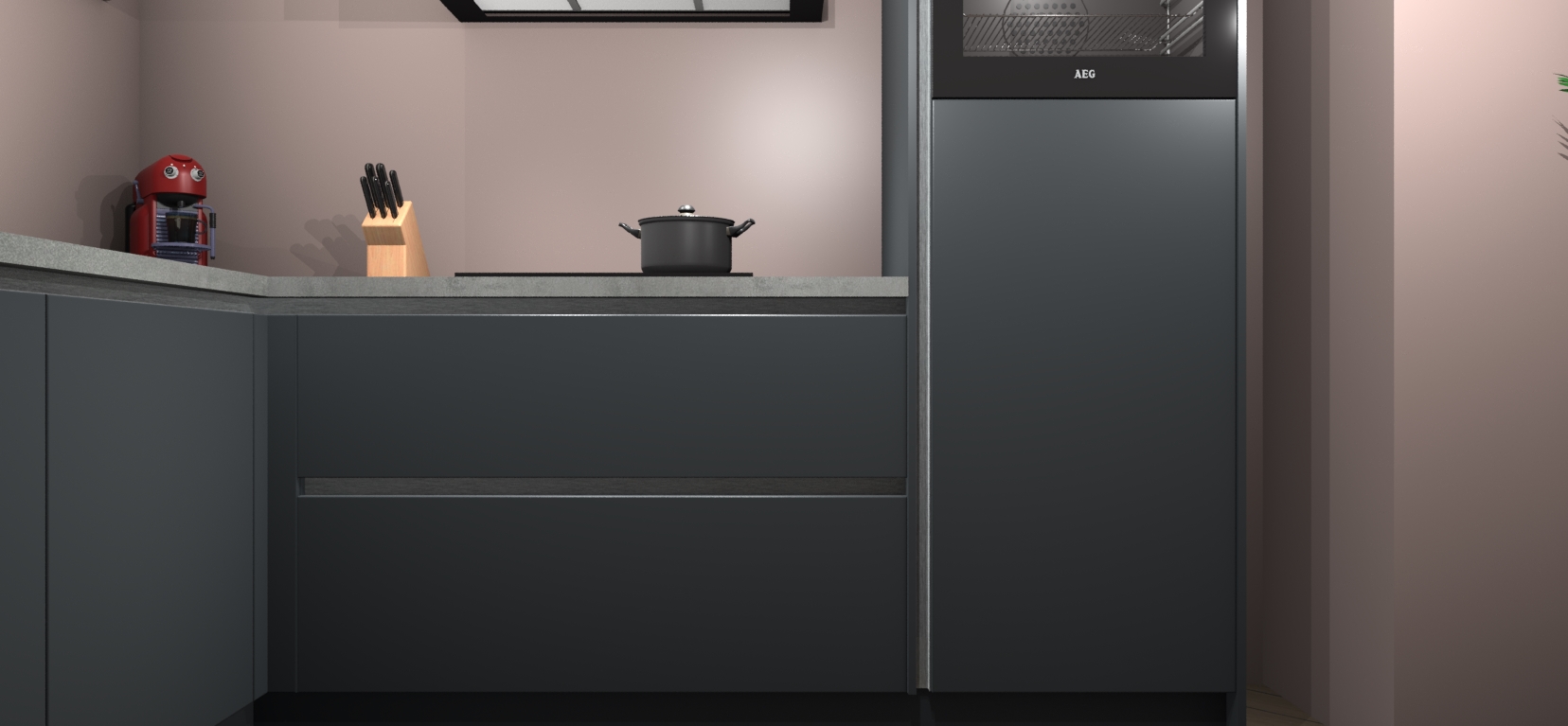 Inclusief plinten, stelpoten en werkblad