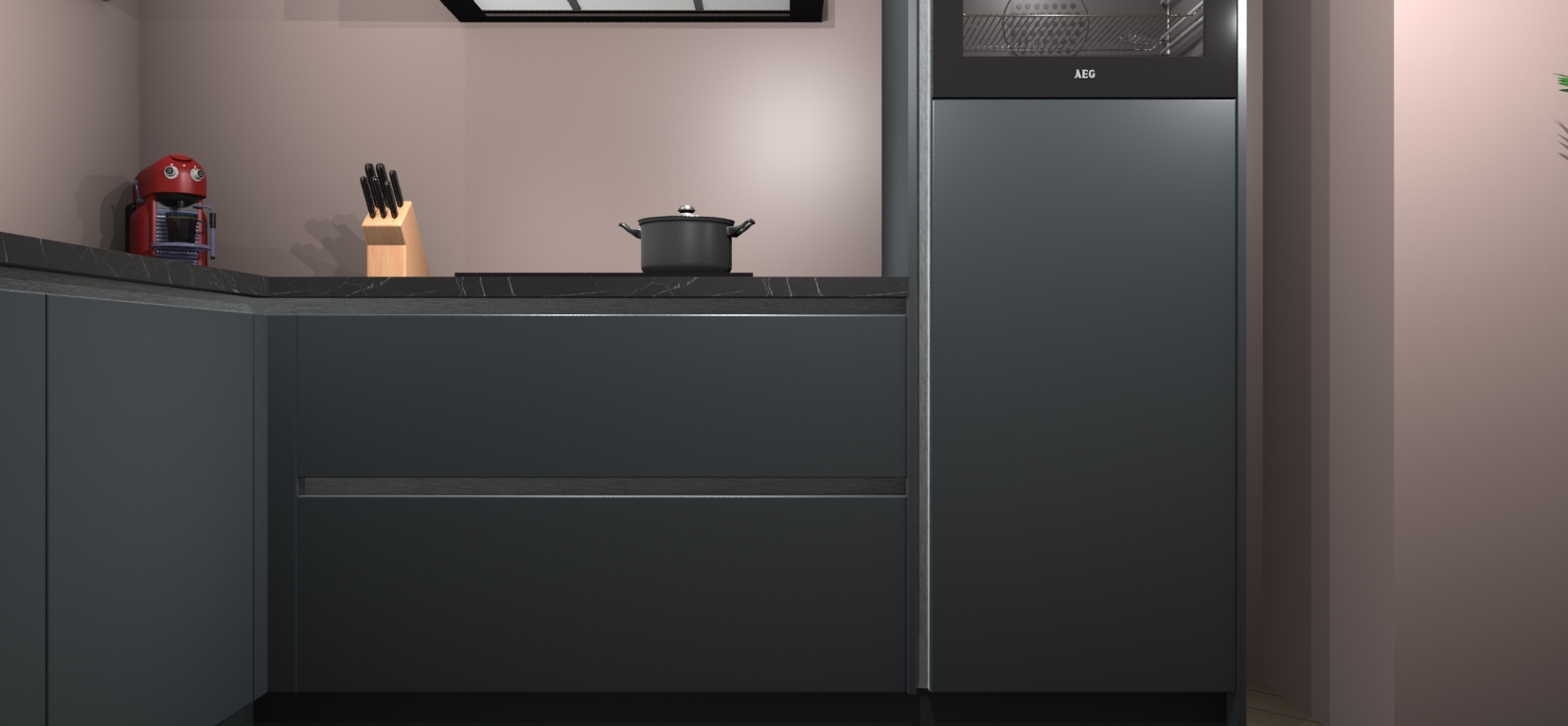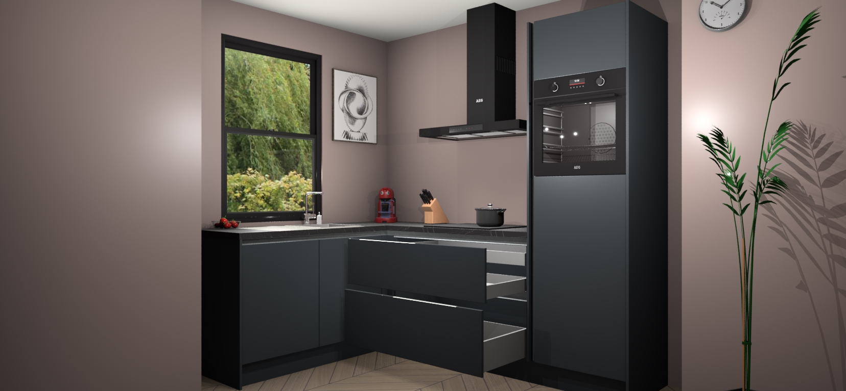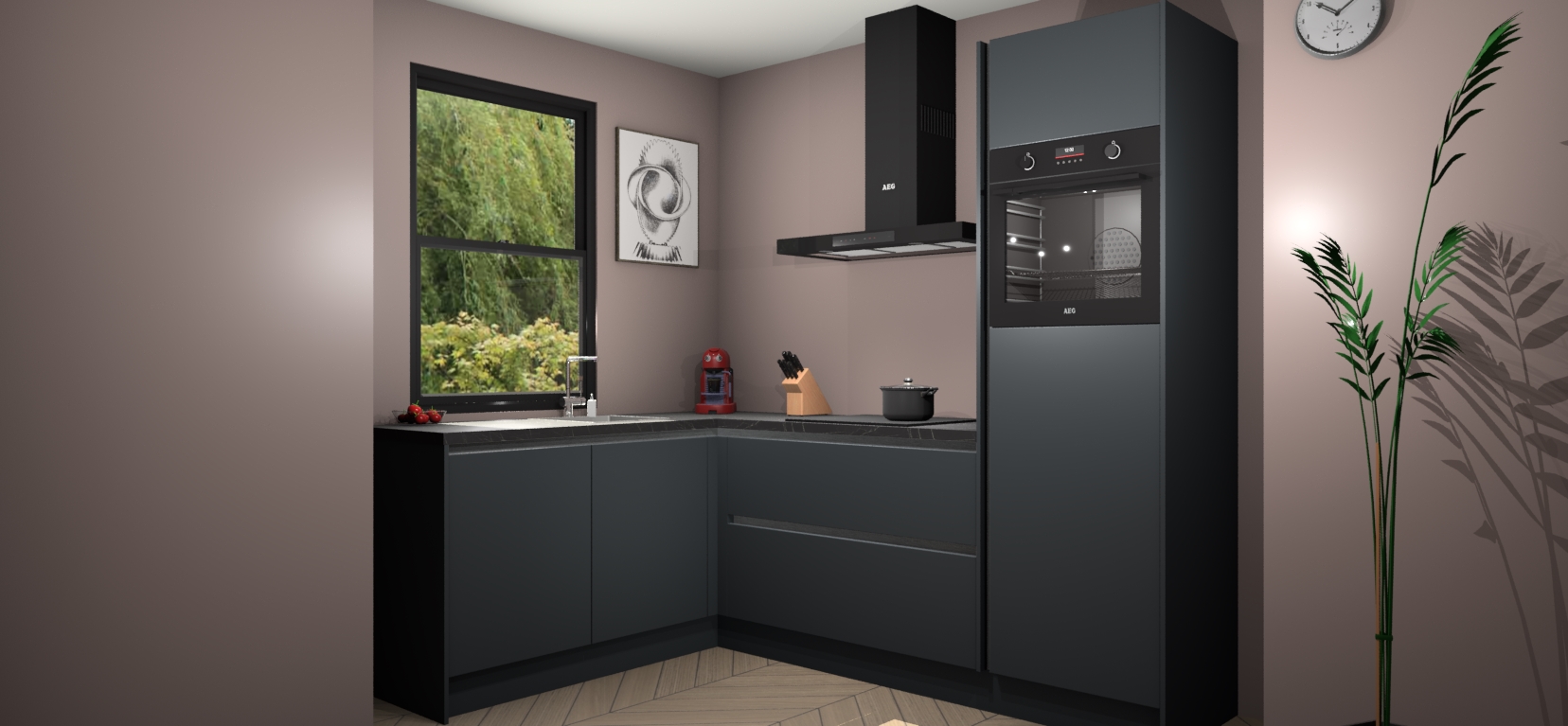 Deze prachtige hoekkeuken heeft alle benodigdheden om uw droomkook- en eetruimte compleet te maken. De Onyxgrijze kasten bieden een echo van raffinement, terwijl de 5 inbouwapparaten genoeg opties bieden voor het bereiden van heerlijke maaltijden. De oven, inductiekookplaat, afzuigkap, vaatwasser en koelkast zorgen ervoor dat u tijd in de keuken zo efficiënt mogelijk verloopt, terwijl ze ook dat extra vleugje luxe bieden.