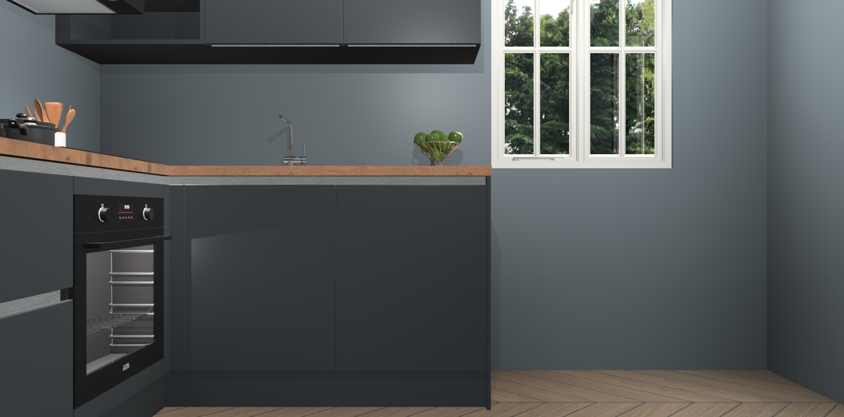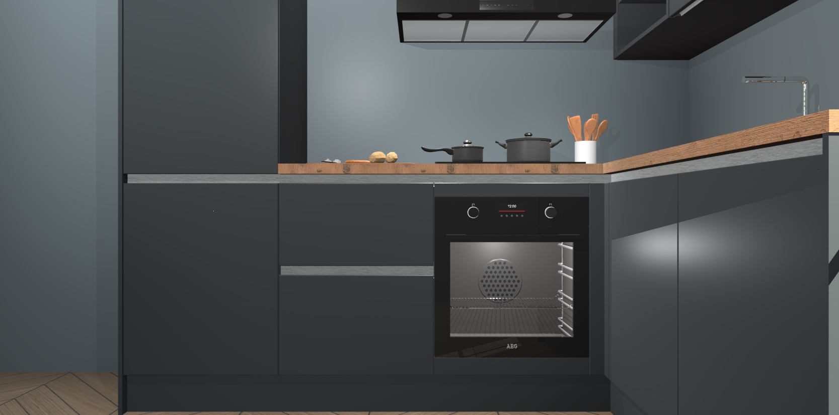 Dit model biedt u voldoende opbergruimte en vijf ingebouwde apparaten: een oven, inductiekookplaat, afzuigkap, vaatwasser en koelkast. Deze apparaten kunnen gemakkelijk worden geüpgrade naar AEG nadat u besteld heeft. De verschillende laden en kastjes bevatten softclose-deuren waardoor ze gezellig dichtvallen met een geruststellend helemaal geruisloos geluid. En dat is nog niet alles! We garanderen ook dat de prijs altijd laag blijft - dus haal nu uw Onyxgrijze greeploze keuken Krakau terwijl het kan.