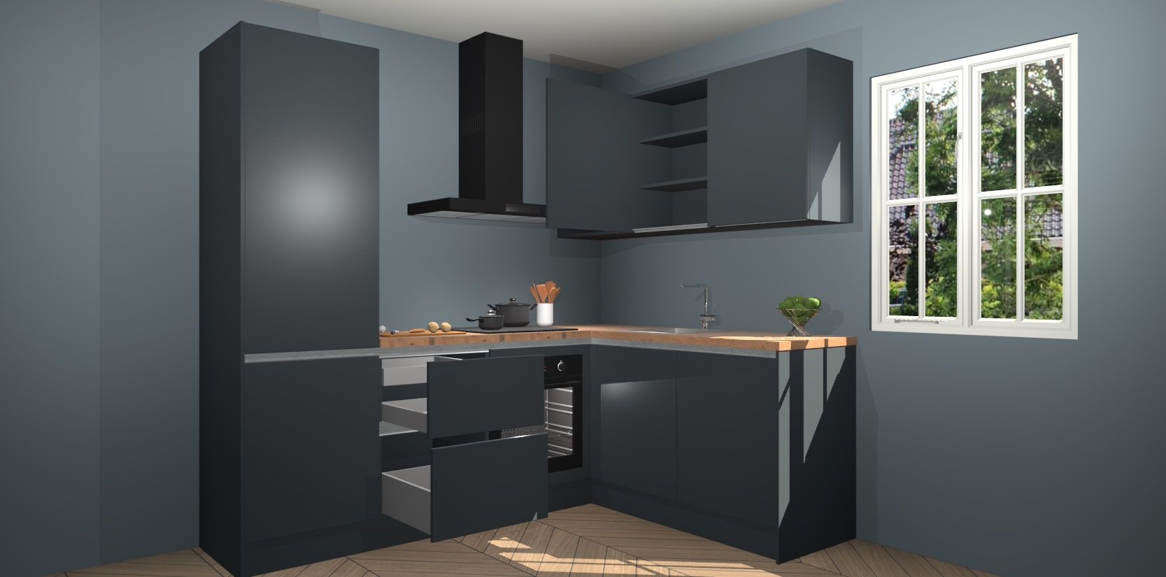 Inclusief plinten, stelpoten en werkblad
