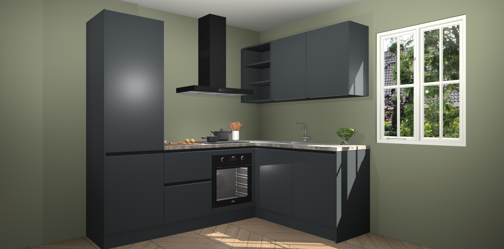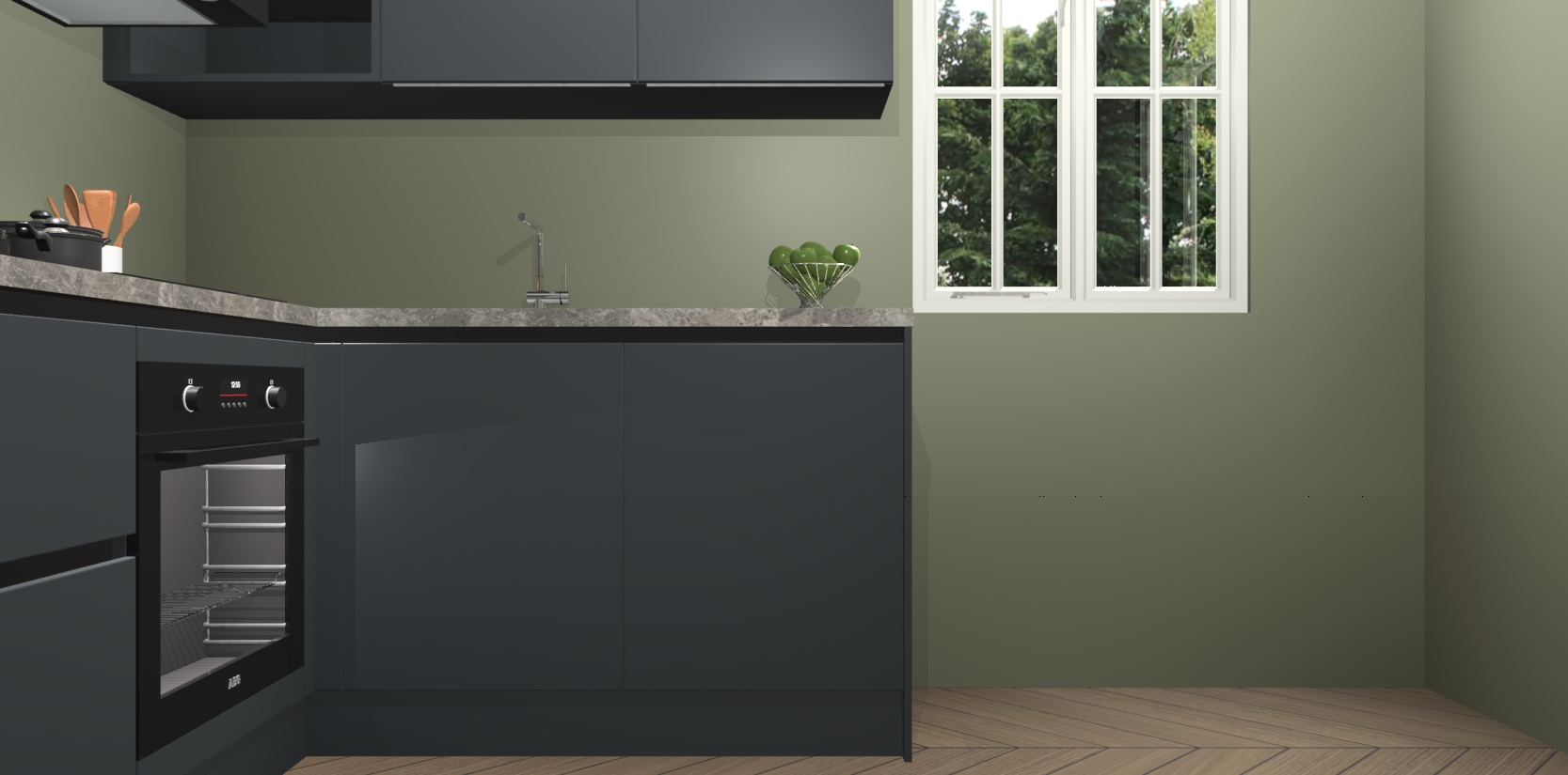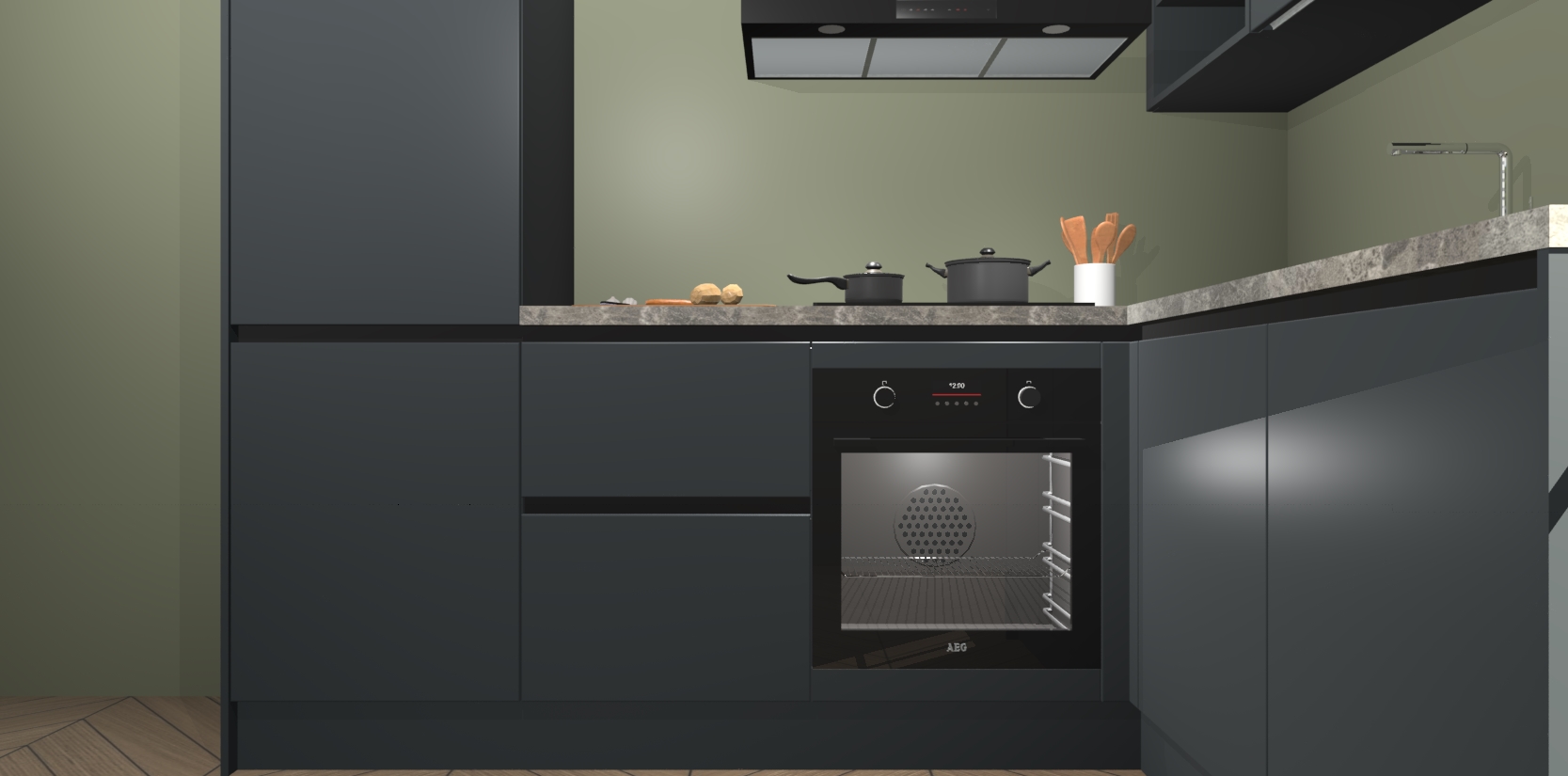 Dit model biedt u voldoende opbergruimte en vijf ingebouwde apparaten: een oven, inductiekookplaat, afzuigkap, vaatwasser en koelkast. Deze apparaten kunnen gemakkelijk worden geüpgrade naar AEG nadat u besteld heeft. De verschillende laden en kastjes bevatten softclose-deuren waardoor ze gezellig dichtvallen met een geruststellend helemaal geruisloos geluid. En dat is nog niet alles! We garanderen ook dat de prijs altijd laag blijft - dus haal nu uw Onyxgrijze greeploze keuken Krakau terwijl het kan.
