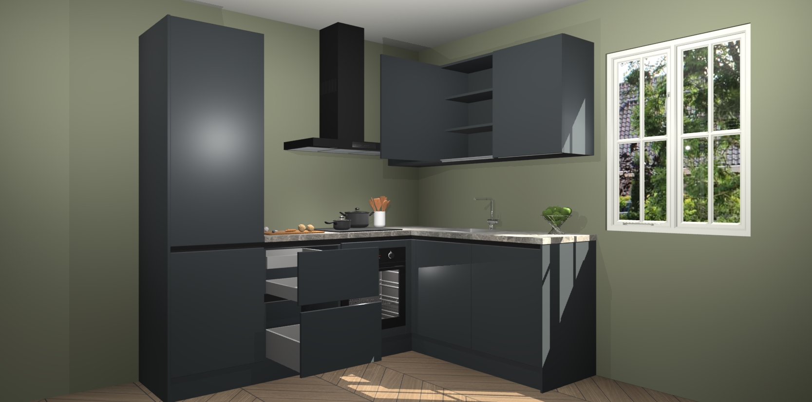 Bestellen was nog nooit zo makkelijk en we leveren met slechts 7 weken; zodra de keuken arriveert staan de kasten voor gemonteerd klaar om er alles aan te doen dat u hem gemakkelijk zelf kunt installeren! Eén ding is zeker: met de Onyxgrijze greeploze keuken Krakau slaagt u erin modischer, modernere keukens uit te rusten die tientallen jaren meegaan! Haal snel uw Onyxgrijze greeploze keuken Krakau - of u nu net begint of al 'levenservaring' hebt in de keukendroomloopbaan - want dit topmodel van onze collectie wilt u absoluut niet missen.