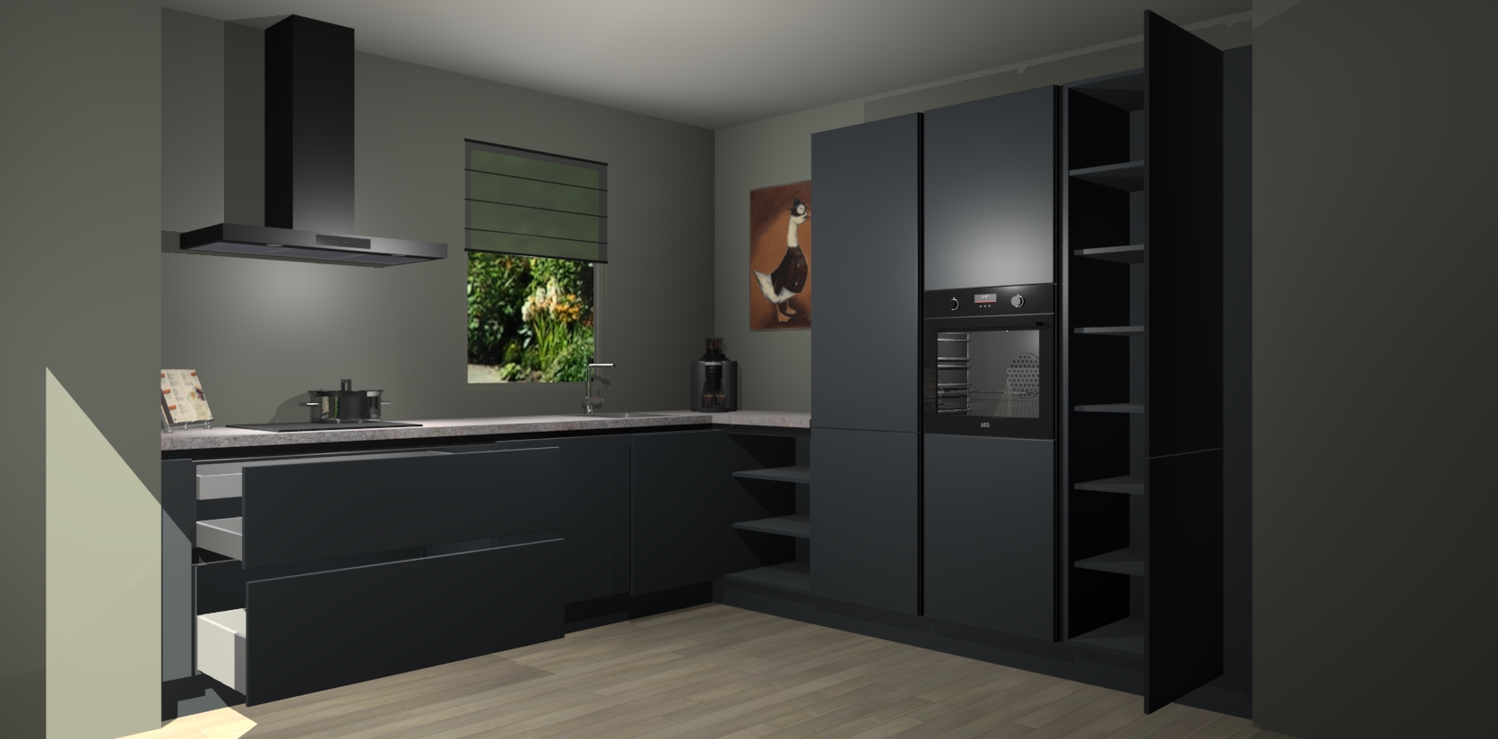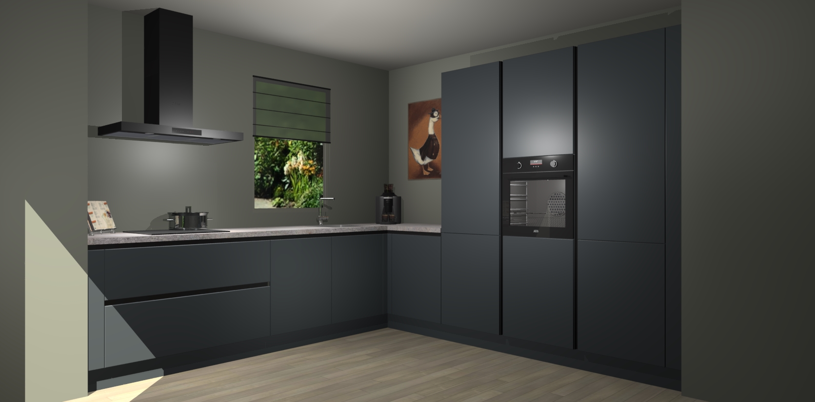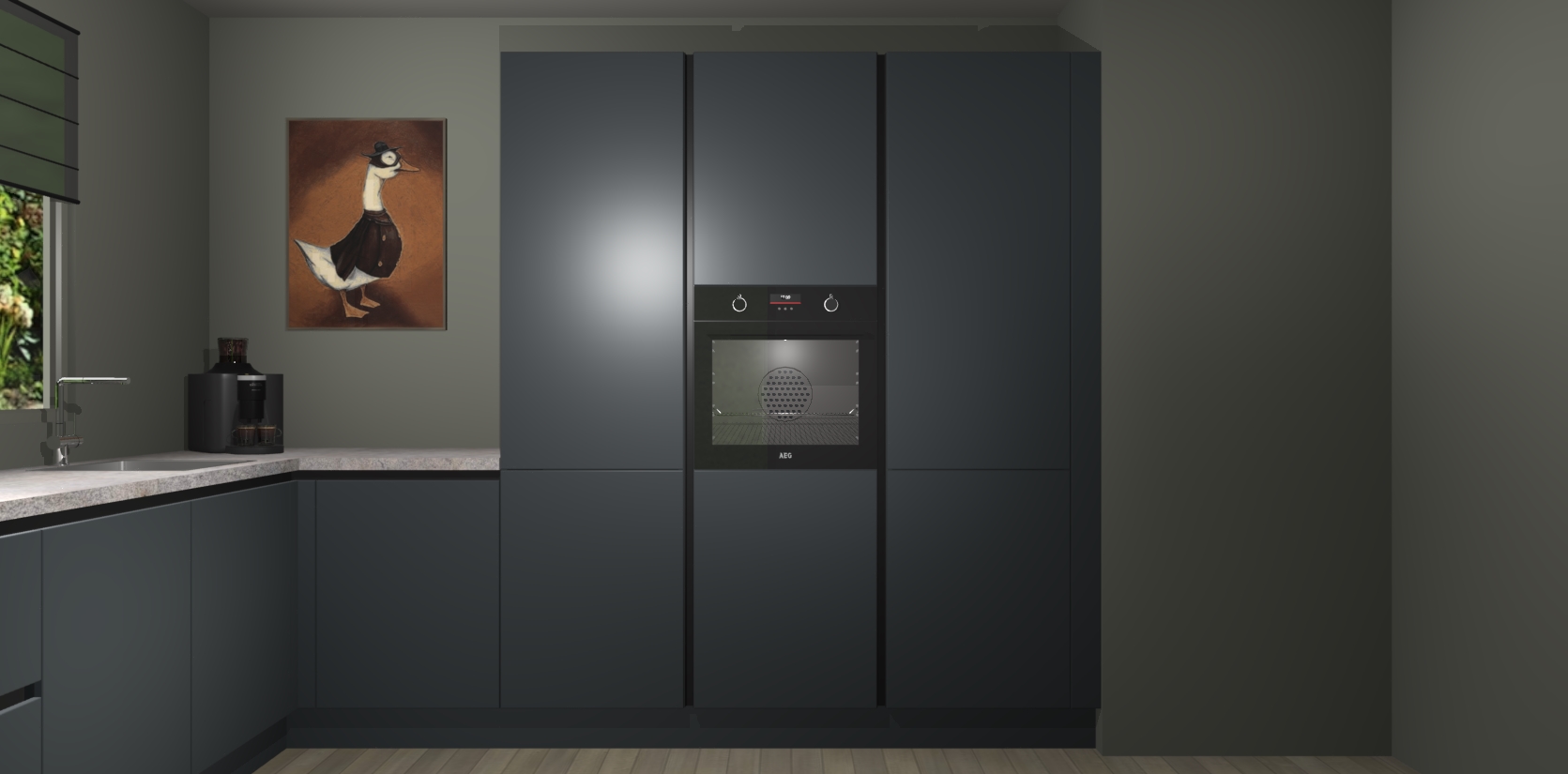 Welkom bij de onyxgrijze greeploze keuken Laos. Deze prachtige keuken zal de komende jaren het middelpunt van de belangstelling in uw huis zijn. Uitgerust met vijf inbouwapparaten komt u nooit kookgereedschap tekort. Bovendien geeft de warme houtlook elke ruimte een uitnodigende en tijdloze uitstraling.