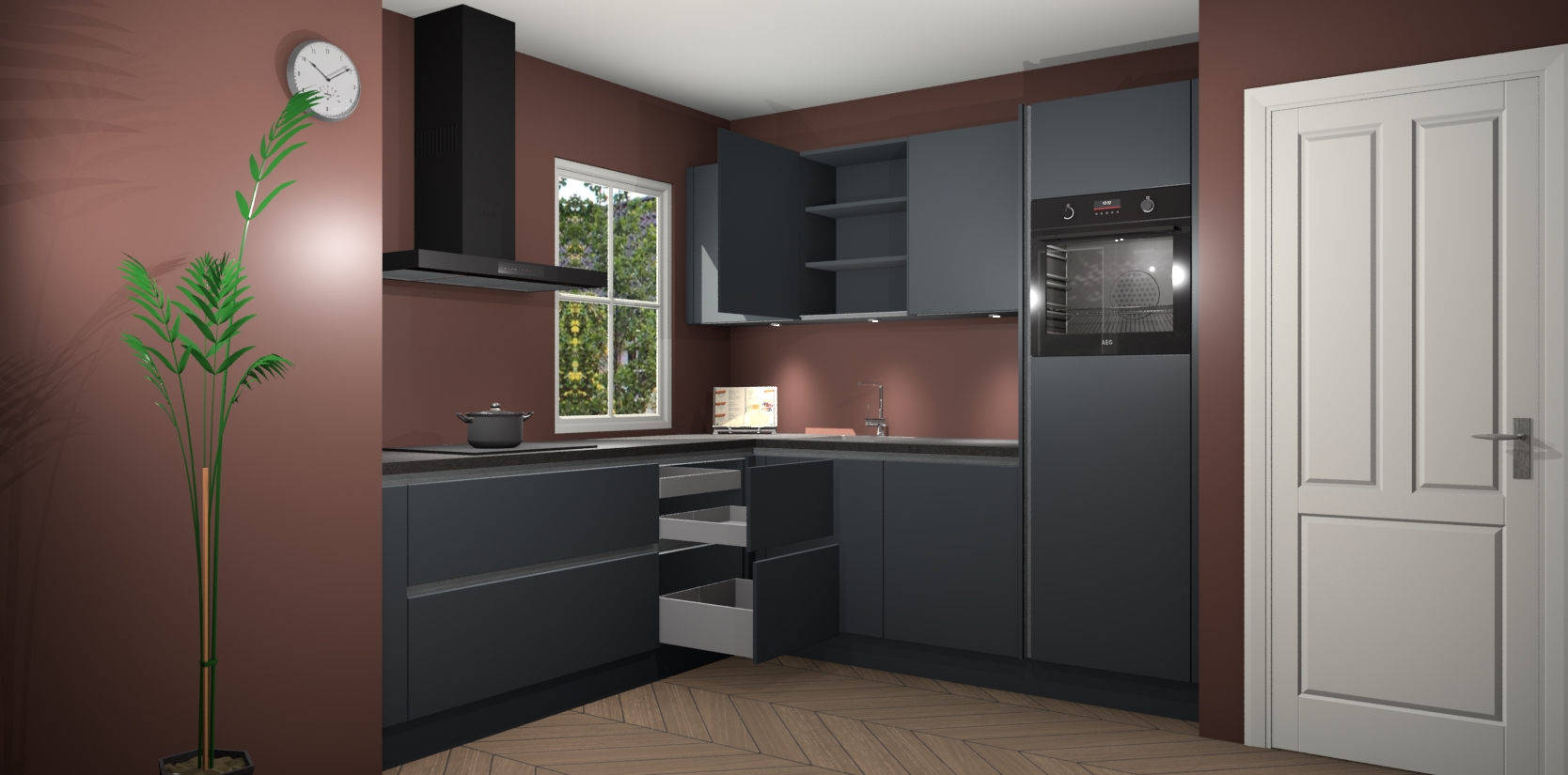 In deze box zijn alle kleuren verzameld van de deuren en werkbladen. Vraag de gratis kleurenbox aan en kijk thuis rustig verder!