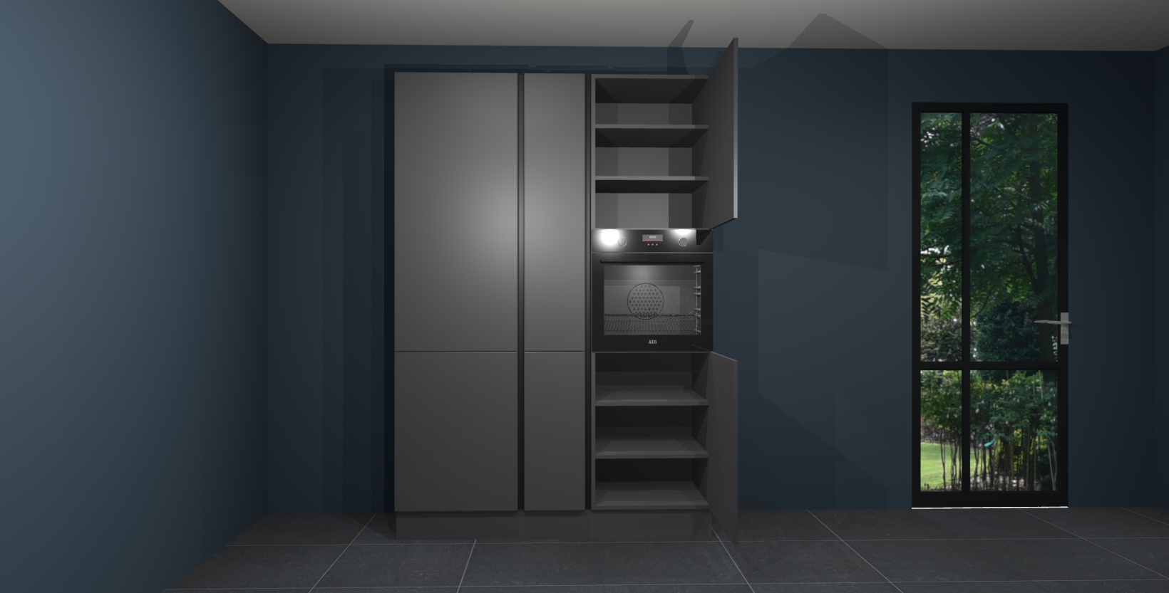 Met een modern, tijdloos design en ruime opslagruimte, zult u zich in no-time thuis voelen in uw nieuwe keuken. Uw leven wordt eenvoudiger met de soft-close deuren die voor het ultieme stille comfort zorgen - geen geluid dat u stoort terwijl u kookt. Ook is de keuken voorzien van 5 ingebouwde apparaten: een oven, inductie kookplaat, afzuigkap, vaatwasser en koelkast. Deze kunnen gemakkelijk na bestelling worden bijgewerkt naar AEG - waardoor uw luxe ervaring compleet is.