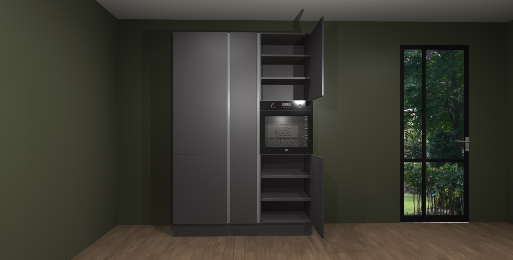 Met een modern, tijdloos design en ruime opslagruimte, zult u zich in no-time thuis voelen in uw nieuwe keuken. Uw leven wordt eenvoudiger met de soft-close deuren die voor het ultieme stille comfort zorgen - geen geluid dat u stoort terwijl u kookt. Ook is de keuken voorzien van 5 ingebouwde apparaten: een oven, inductie kookplaat, afzuigkap, vaatwasser en koelkast. Deze kunnen gemakkelijk na bestelling worden bijgewerkt naar AEG - waardoor uw luxe ervaring compleet is.