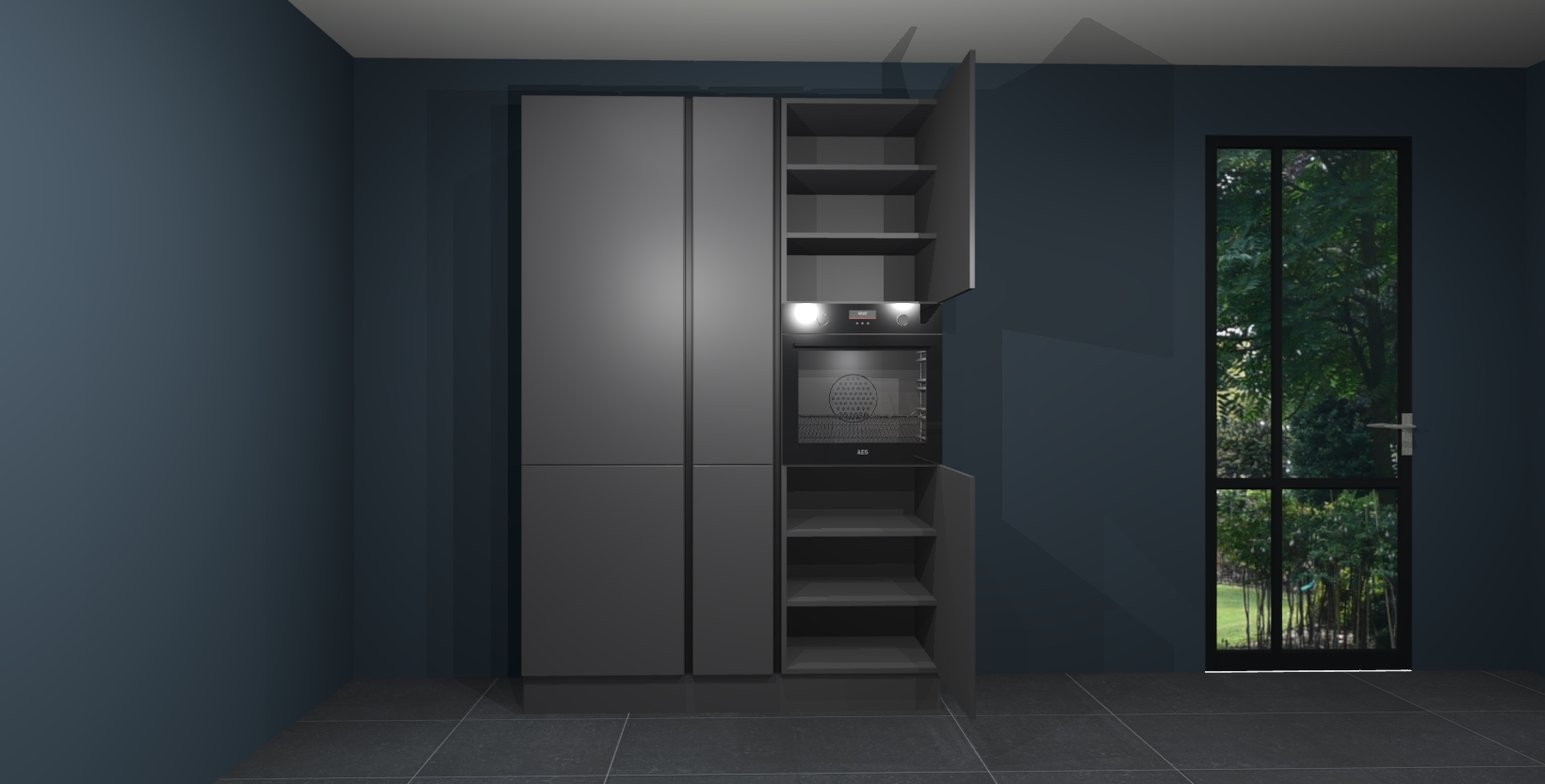 Met een modern, tijdloos design en ruime opslagruimte, zult u zich in no-time thuis voelen in uw nieuwe keuken. Uw leven wordt eenvoudiger met de soft-close deuren die voor het ultieme stille comfort zorgen - geen geluid dat u stoort terwijl u kookt. Ook is de keuken voorzien van 5 ingebouwde apparaten: een oven, inductie kookplaat, afzuigkap, vaatwasser en koelkast. Deze kunnen gemakkelijk na bestelling worden bijgewerkt naar AEG - waardoor uw luxe ervaring compleet is.