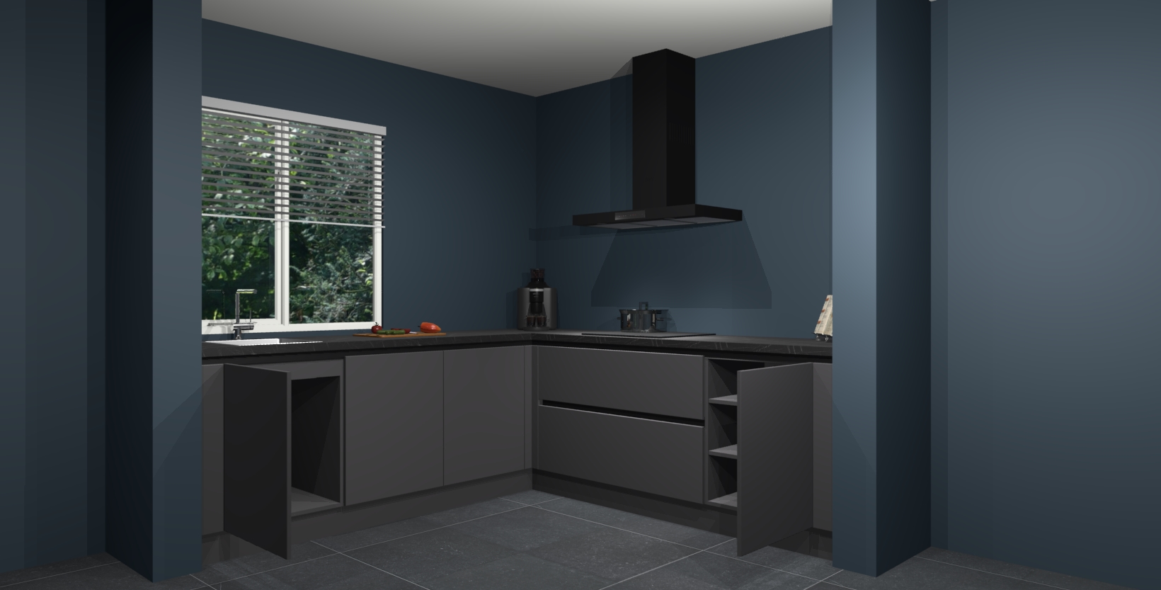 In deze box zijn alle kleuren verzameld van de deuren en werkbladen. Vraag de gratis kleurenbox aan en kijk thuis rustig verder!