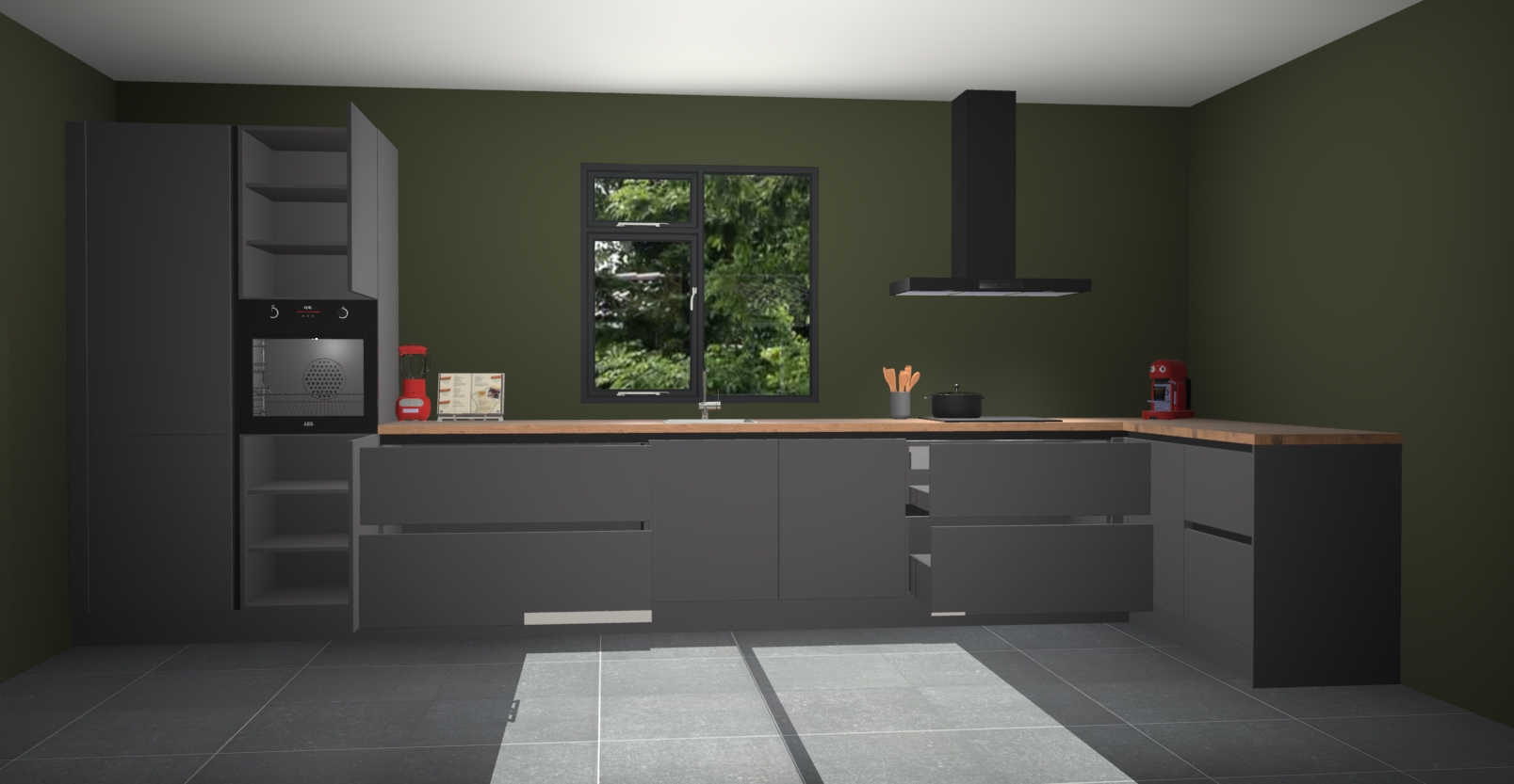 Wilt u uw keuken upgraden en de perfecte moderne toets geven? Kijk dan niet verder dan de Onyxgrijze keuken Lille. Deze mega moderne keuken straalt warmte en sfeer uit en is daarmee de perfecte aanvulling voor elke ruimte.