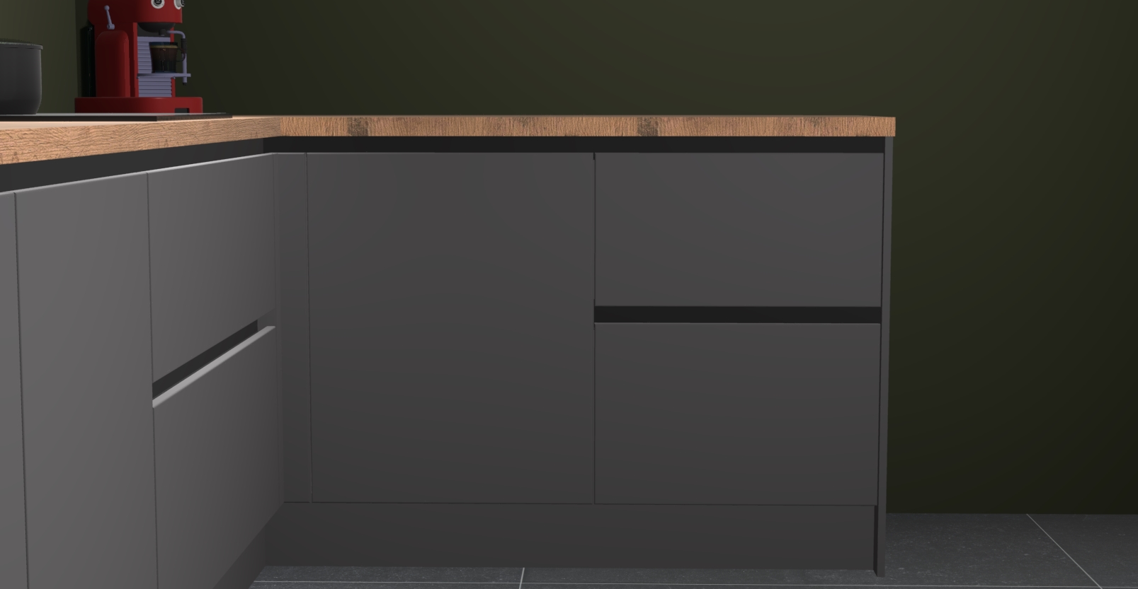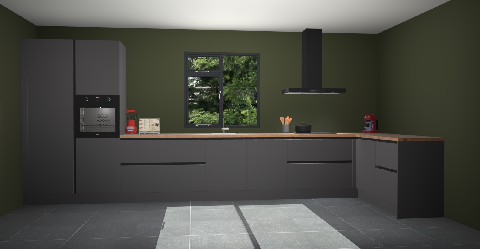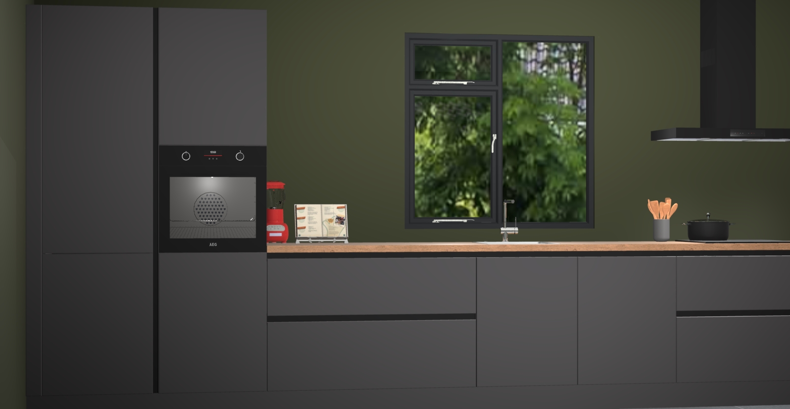 De Onyxgrijze keuken Lille wordt geleverd met vijf inbouwapparaten - een oven, inductiekookplaat, afzuigkap, vaatwasser en koelkast. Maar dat is nog niet alles! Na bestelling kunnen deze apparaten eenvoudig worden geüpgraded naar premium AEG-apparatuur. Bovendien is er zelfs de optie om de oven te vervangen door een combimagnetron of uw inductiekookplaat te vervangen door een kookplaat met geïntegreerde afzuiging.